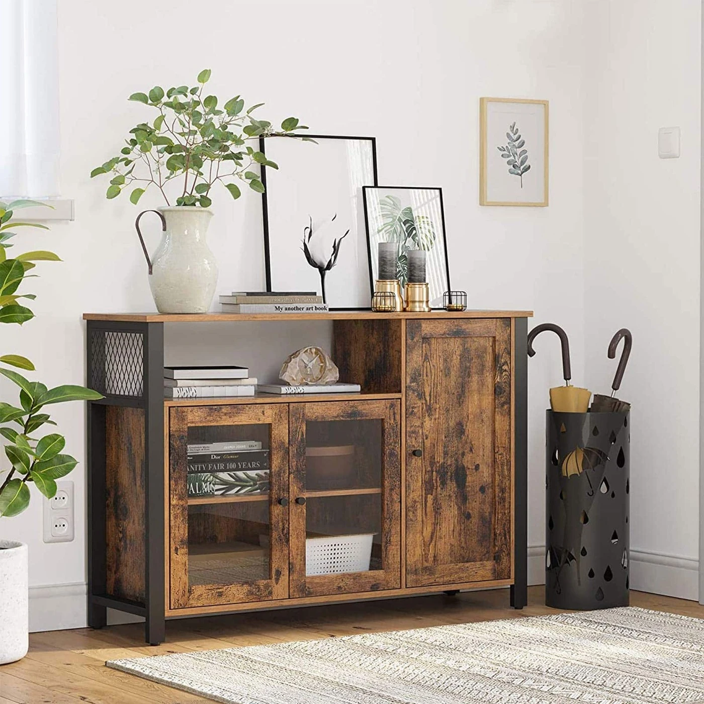 Aprašymas buvo automatiškai išverstas, gali pasitaikyti klaidų.Informacija apie gaminį: - Spalva: vintažinė ruda-juoda - Medžiaga: medžio drožlių plokštės, plienas - Dydis: 110 x 33 x 75 cm (P x P x A) - Svoris: 26,7 kg - Maksimali statinė paviršiaus apkrova: 30 kg - Maksimali statinė apkrova vienam lentynos lygiui apatinėje srityje: 10 kgPristatymo komplektas: - 1 x saugojimo spintelė - 1 x priedų paketas - 1 x apsaugos nuo posvyrio įtaisas - 1 x rankinis (DE, EN, ES, FR, IT) VASAGLE Pastabos: - Saugumo sumetimais vaikams draudžiama lipti ant gaminio arba žaiskite su juo. - Pritvirtinkite šį gaminį prie sienos su komplekte esančia apsauga nuo apsivertimo, kad neapvirstumėte.