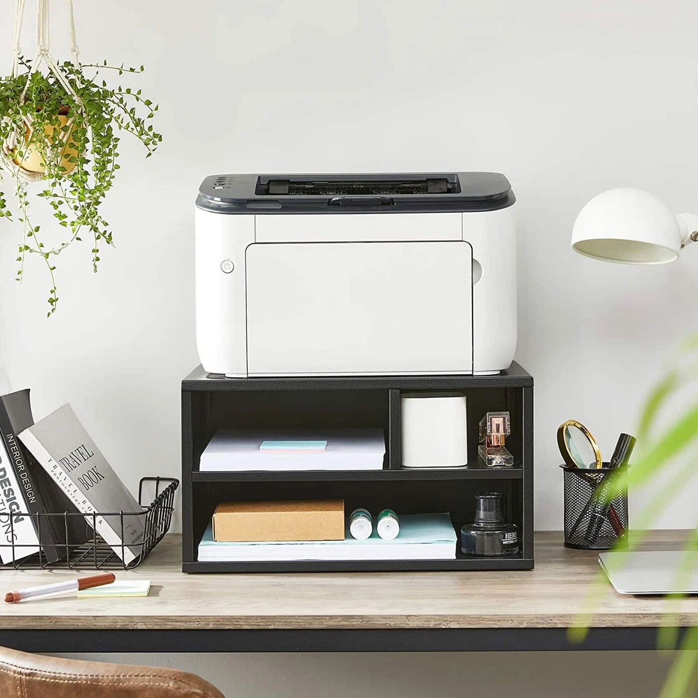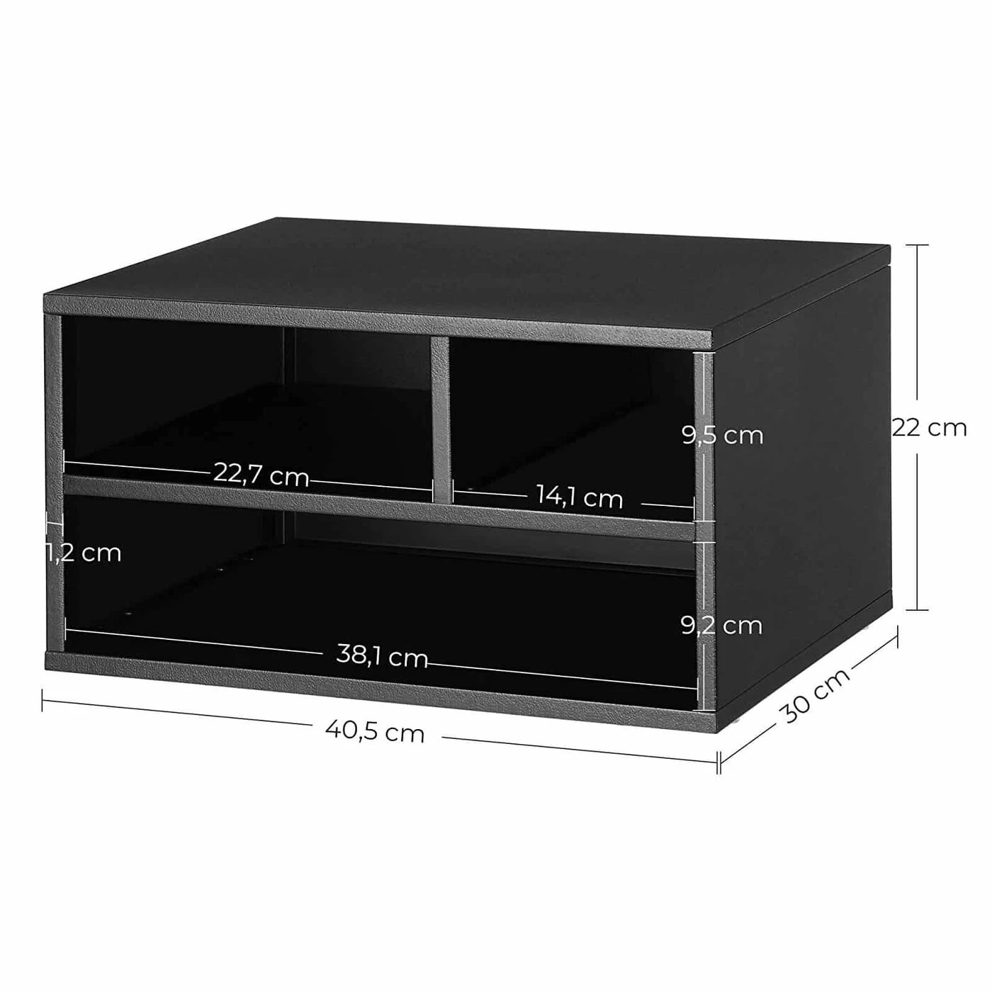 Aprašymas buvo automatiškai išverstas, gali pasitaikyti klaidų.Išsami informacija apie gaminį: Spalva: Matinė juoda Medžiaga: Plienas Dydis: 40,5 x 30 x 22 cm (P x P x A) Svoris: 3 kg Maks. statinė paviršiaus apkrova: 50 kgMaks. Vidurinės lentynos statinė apkrova: 15 kgPristatymo komplektas: 1 x spausdintuvo lentyna 1 x priedų pakuotė 1 x instrukcija (DE, EN, FR, ES, IT)