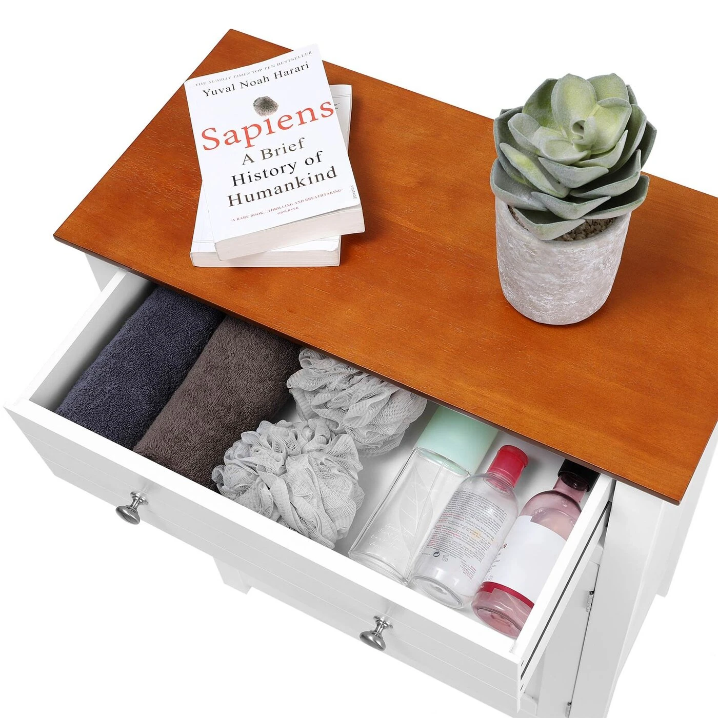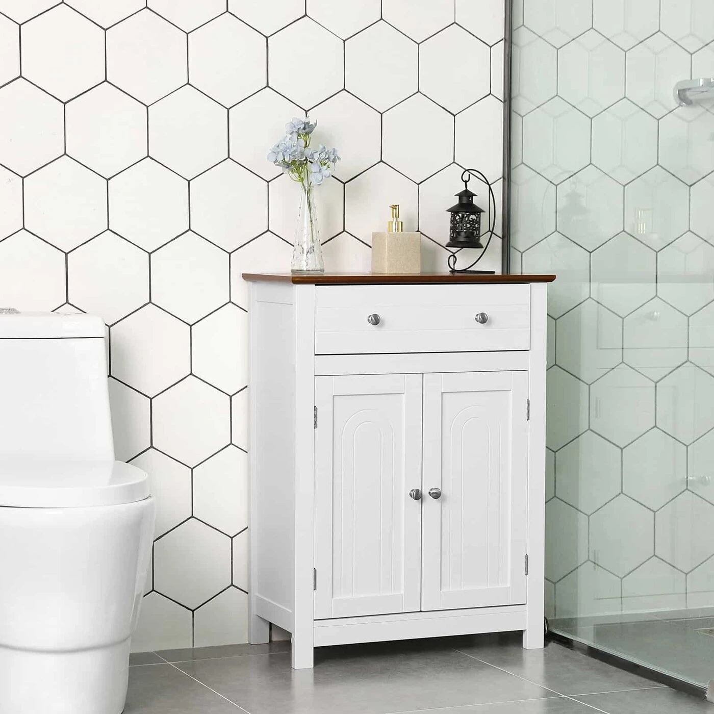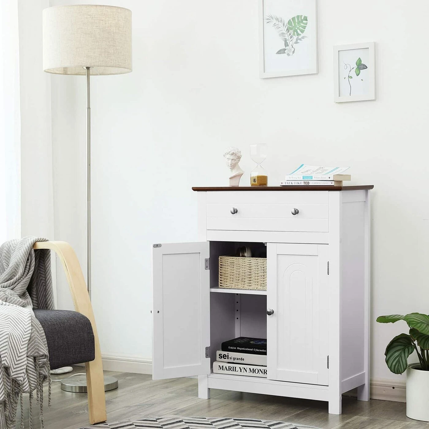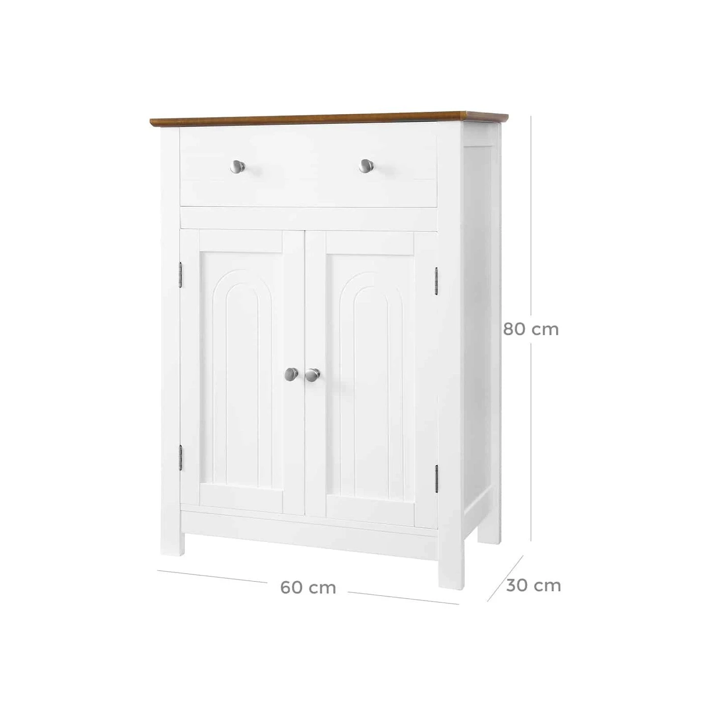 Aprašymas buvo automatiškai išverstas, gali pasitaikyti klaidų.Ar jus visada erzina chaosas vonioje/svetainėje, koridoriuje ar virtuvėje? Pastatoma spintelė iš VASAGLE yra praktiškas įrankis jums. Dekoratyvinis elementas Jūsų namuose Dėl baltos ir rudos spalvų derinio kaimiško stiliaus spinta atrodo elegantiškai ir patraukliai, tarnauja ne tik kaip baldas, bet ir kaip namų puošmena. Sudėtingas dizainas Viršuje yra didelis stalčius, kuriame yra vietos jūsų indams, kuriuos dažnai naudojate kasdieniame gyvenime. 180° pasukamos dvivėrės durys yra su chromuotomis metalinėmis rankenomis, kurios palengvina valdymą. Už durų esanti uždara saugykla pagal poreikį gali būti padalinta į lentyną, kurią galima reguliuoti į 3 pozicijas. Taigi čia galite laikyti įvairius daiktus ir apsaugoti juos nuo dulkių, vandens ir smalsių akių. VASAGLE yra įsipareigojusi pasiūlyti aukštos kokybės baldus, kad sukurtų patogią ir jaukią atmosferą jūsų namuose.Prekės informacija: - Spalva: balta, ruda - Medžiaga: MDF plokštės, medžio masyvo fanera (viršutinė lentyna) - Matmenys: 60 x 80 x 30 cm (P x A x G) - Svoris: 14,1 kg Pristatymo komplektas: - 1 x vonios spintelė - 1 x priedų krepšys - 1 x vadovas (DE, EN, IT, FR, ES)