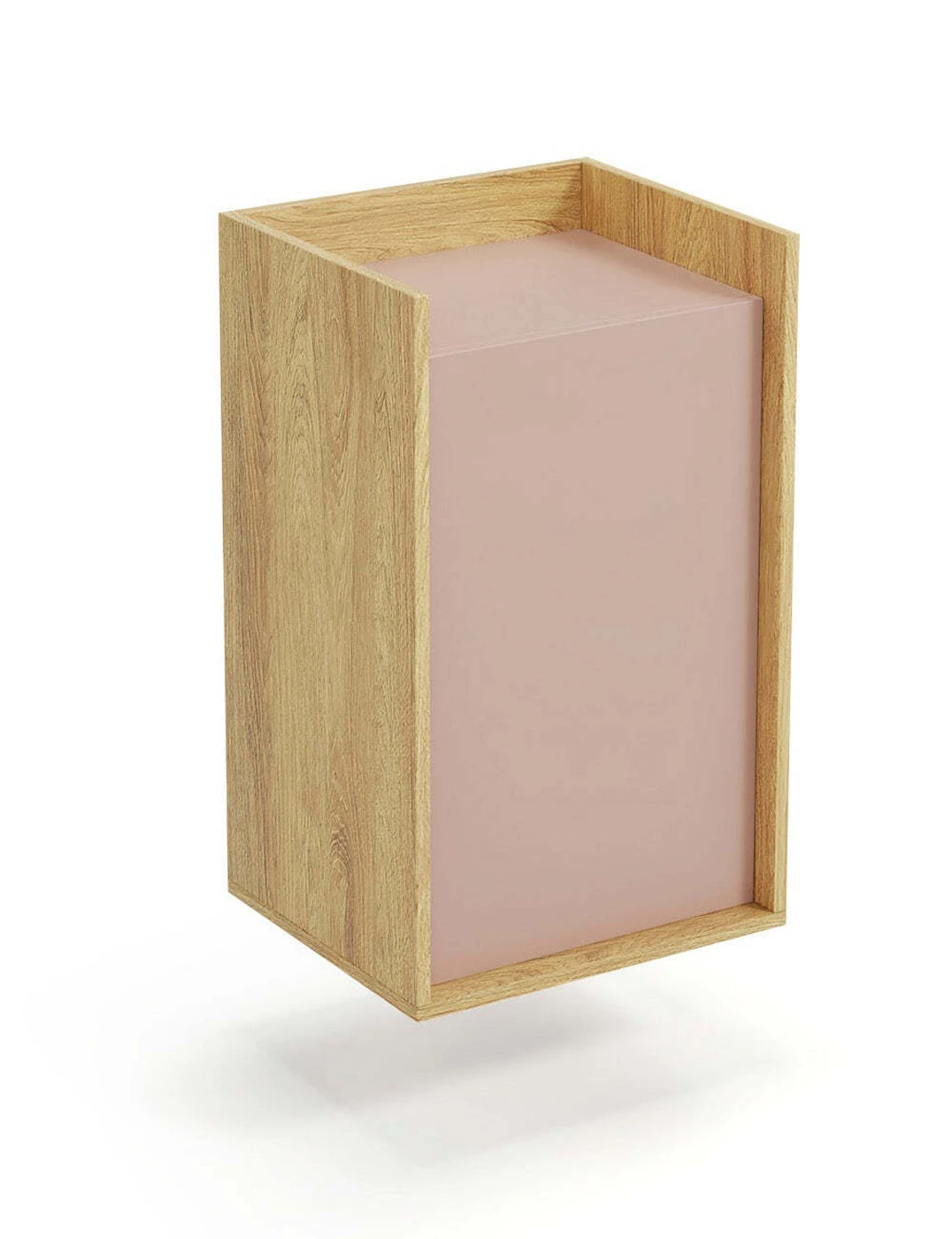 matmenys: 50/41/83 cm, medžiaga: laminuota medžio drožlių plokštė, ABS briaunos, "push-clik" mechanizmas, spalva: hikora ąžuolas/rožinė