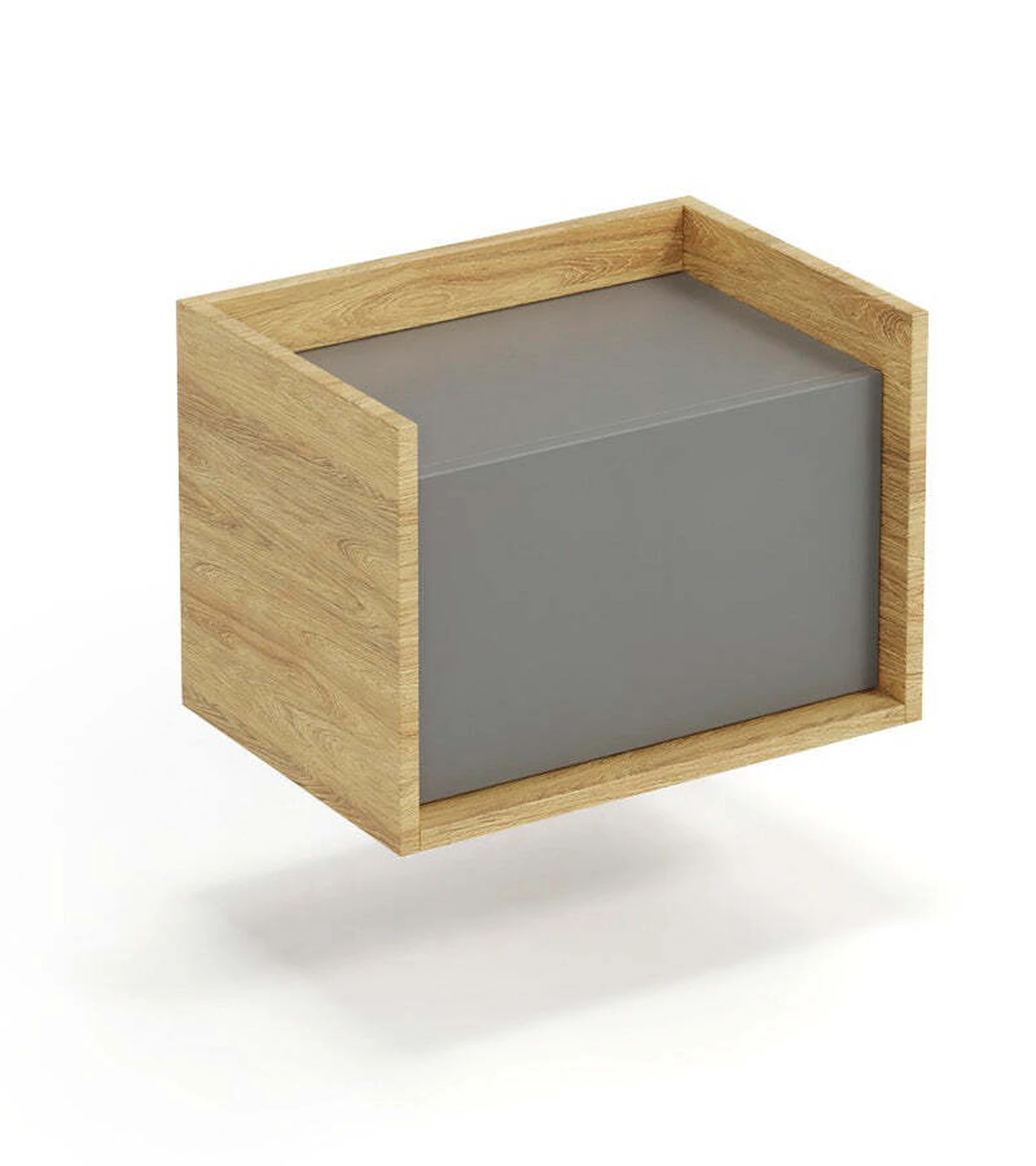 matmenys: 50/41/36 cm, medžiaga: laminuota medžio drožlių plokštė, ABS briaunos, push-clik mechanizmas, spalva: hikora ąžuolas/rožinė