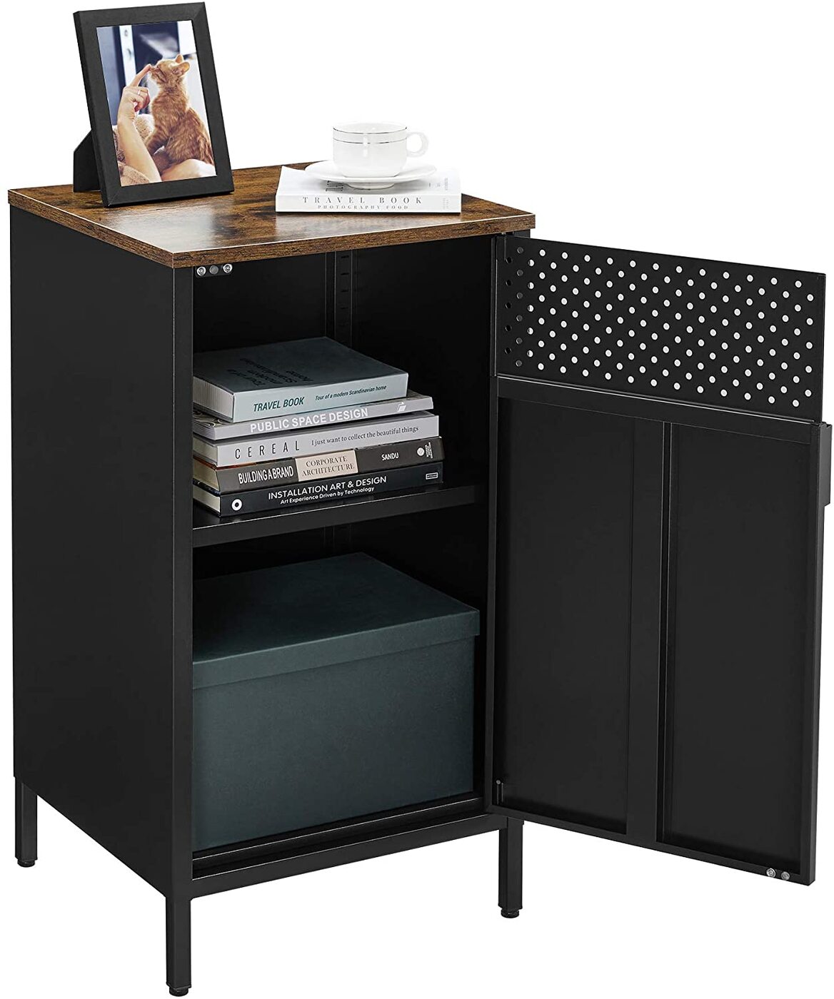 Aprašymas buvo automatiškai išverstas, gali pasitaikyti klaidų.Išsami informacija apie gaminį: Spalva: vintažinė ruda-juoda Medžiaga: plienas, medžio drožlių plokštės Dydis (su kojomis): 42,5 x 40 x 76 cm (P x P x A) Svoris: 10,9 kg Maks. Statinė paviršiaus apkrova: 50 kgPristatymo komplektas: 1 x metalinė spintelė 1 x priedų pakuotė 1 x apsauga nuo apvirtimo 1 x instrukcijos (DE, EN, FR, ES, IT) SONGMICS Pastabos: Saugumo sumetimais vaikams draudžiama lipti ant gaminio ar žaisti su juo tai.