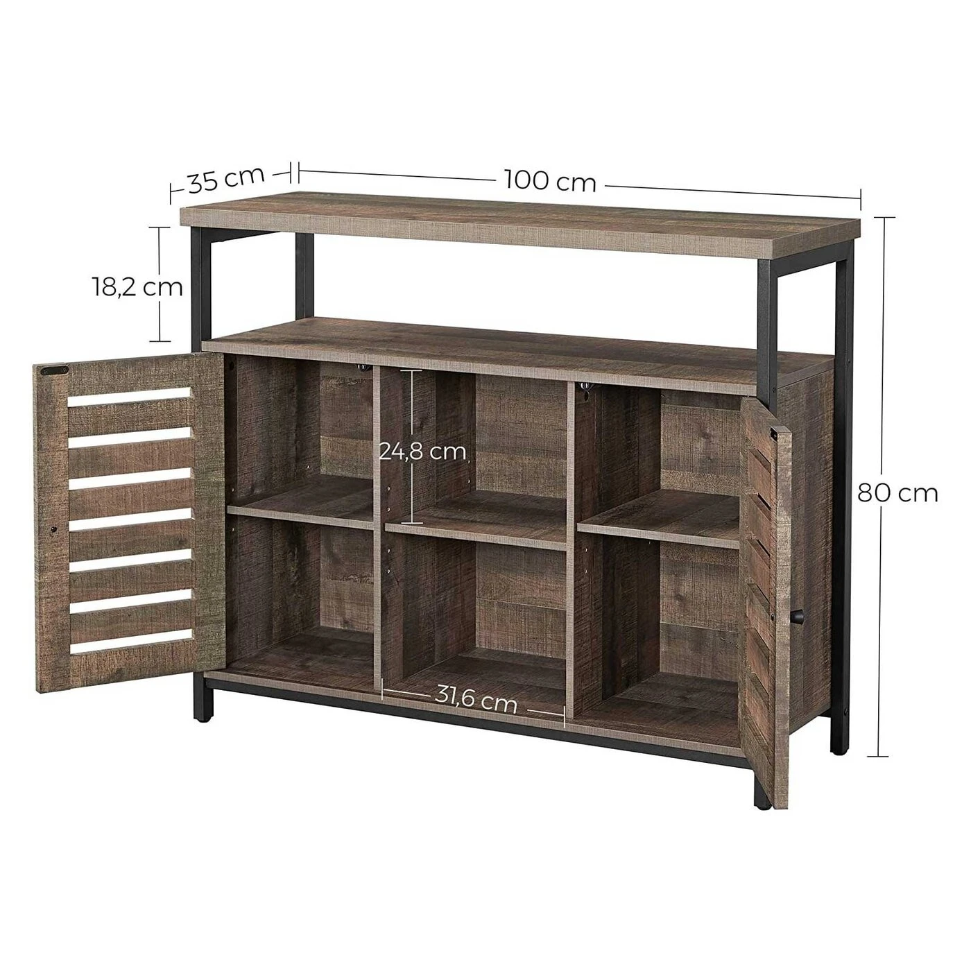 Aprašymas buvo automatiškai išverstas, gali pasitaikyti klaidų.Informacija apie gaminį: - Spalva: Blyškiai ruda-juoda - Medžiaga: Medienos drožlių plokštės, plienas - Dydis: 100 x 35 x 80 cm (P x P x A) - Svoris: 26,8 kg - Maksimali statinė paviršiaus apkrova: 30 kg - Maksimali statinė apkrova vienam lentynos lygiui: 10 kgPristatymo komplektas: - 1 x šoninė spintelė su grotelėmis - 1 x priedų paketas - 1 x apsaugos nuo posvyrio įtaisas - 1 x rankinis (DE, EN, ES, FR, IT) VASAGLE Pastabos: - Saugumo sumetimais vaikams draudžiama Leidžiama lipti ant gaminio arba juo naudotis.- Pritvirtinkite šį gaminį prie sienos su komplekte esančiu apsaugančiu nuo apvirtimo, kad užtikrintumėte saugų naudojimą.