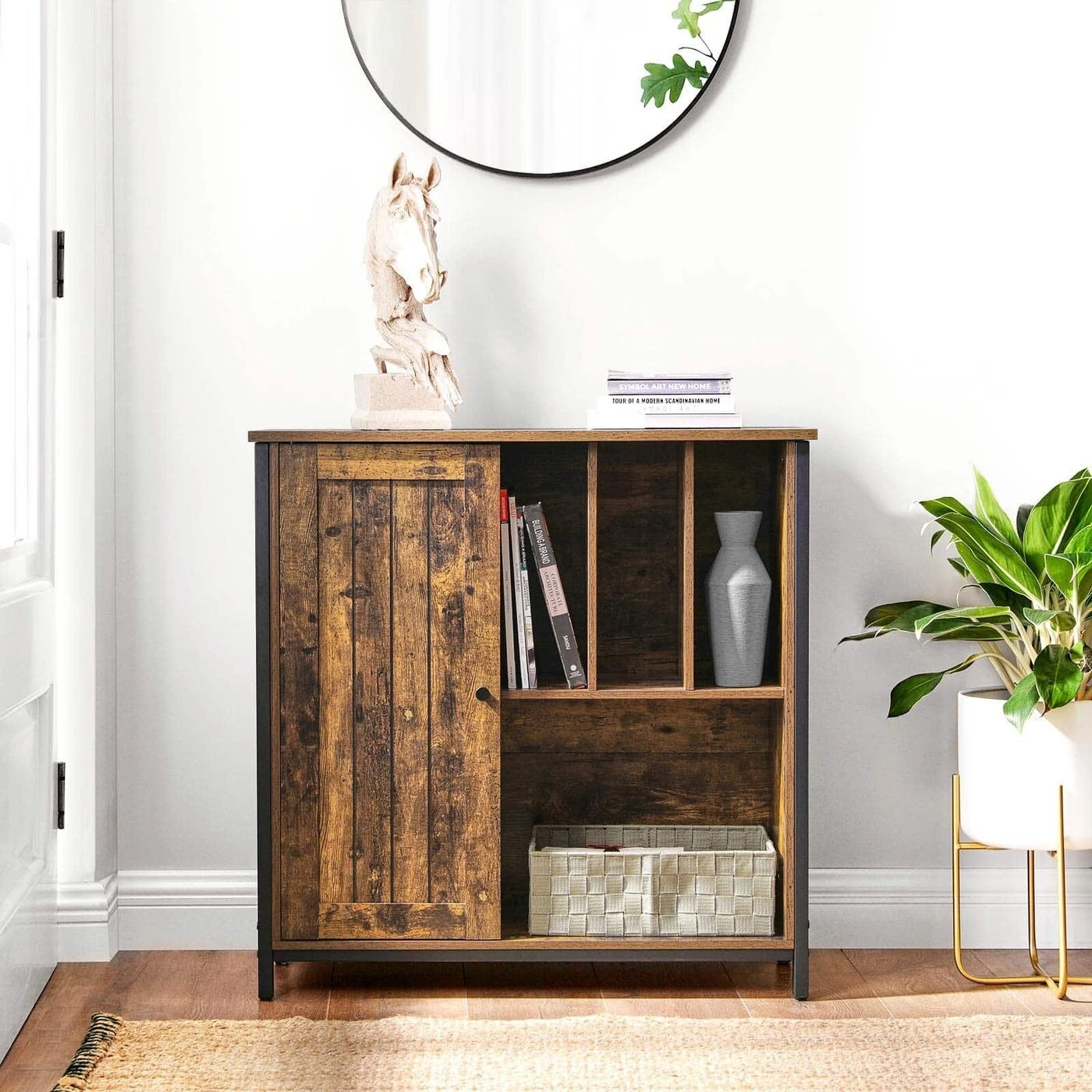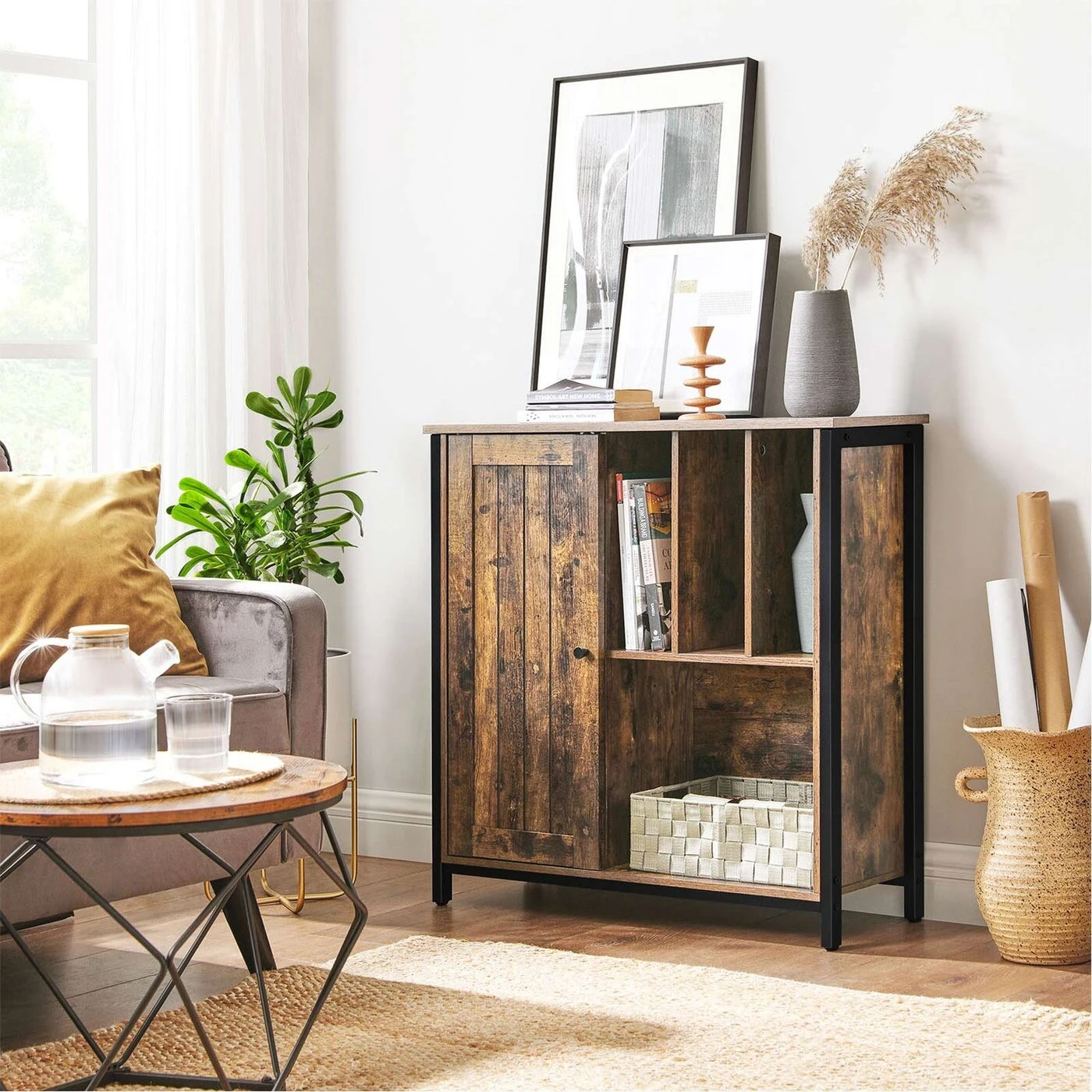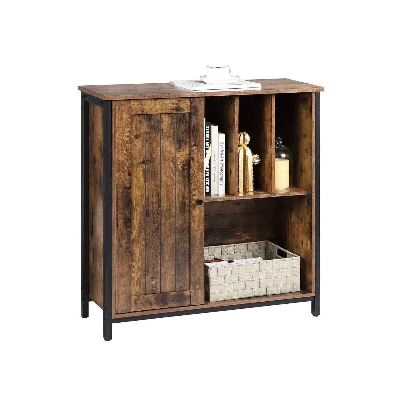 Aprašymas buvo automatiškai išverstas, gali pasitaikyti klaidų. Informacija apie gaminį: - Spalva: vintažinė ruda-juoda - Medžiaga: medžio drožlių plokštė, plienas - Dydis: 80 x 30 x 80,5 cm (P x P x A) - Svoris: 20,8 kg - Maksimali statinė lentynos už durų apkrova : 15 kg - Maks. statinė atviros lentynos apkrova: 20 kg - Maks. statinė viršutinės dalies apkrova: 30 kgPristatymo komplektas: - 1 x indauja - 1 x priedų paketas - 1 x apsaugos nuo apvirtimo - 1 x rankinis (DE, EN, ES, FR, IT) VASAGLE Pastabos: - Saugumo sumetimais vaikams neleidžiama lipti ant produktą arba žaisti su juo. - Pritvirtinkite šį gaminį prie sienos naudodami pridedamą apsaugą nuo apvirtimo, kad neapvirstumėte.