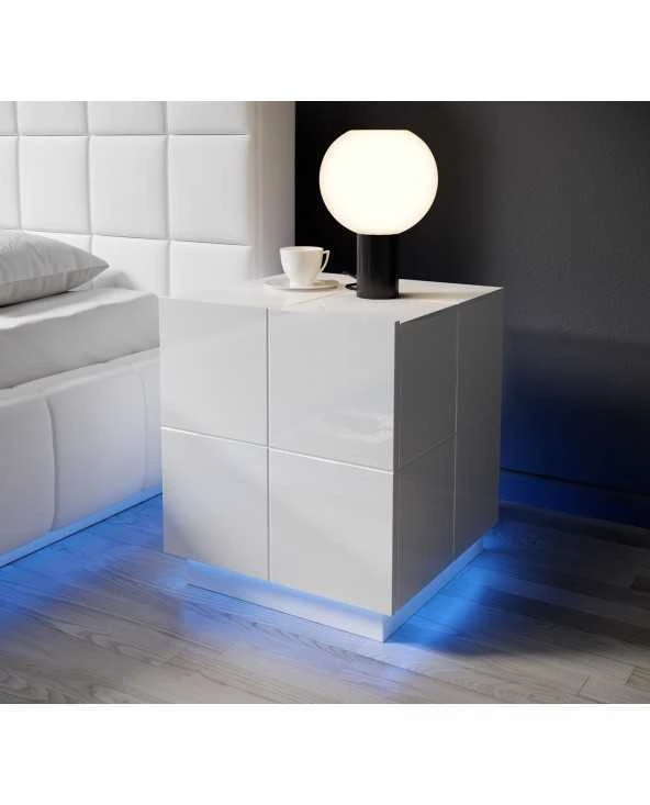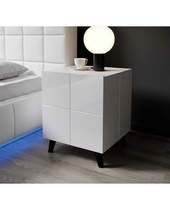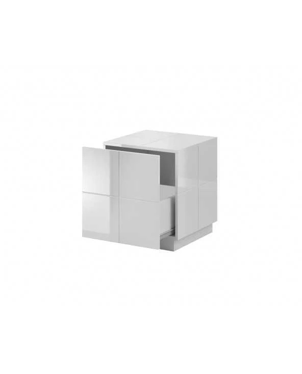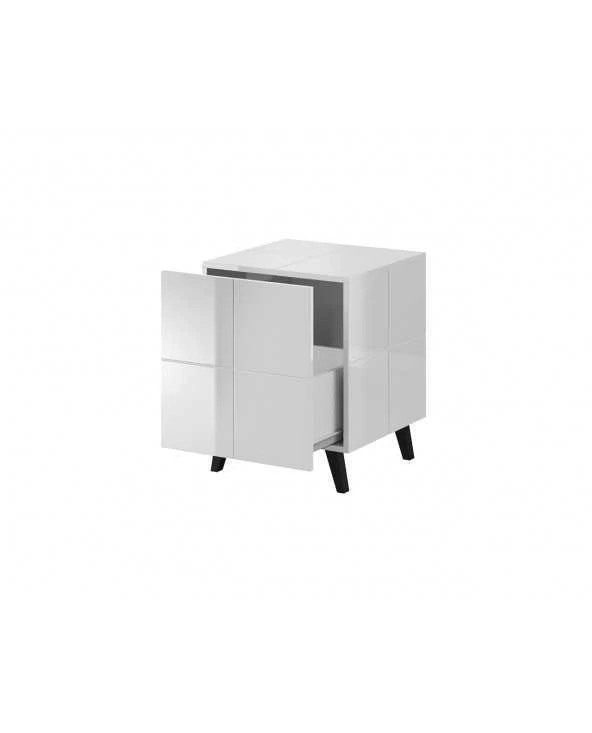 | Medžiaga | Šonai ir viršus: blizgi frezuota MDF plokštė Priekinės dalys / atvartai: blizgi frezuota MDF plokštė Kiti elementai: laminuota baldų plokštė |
