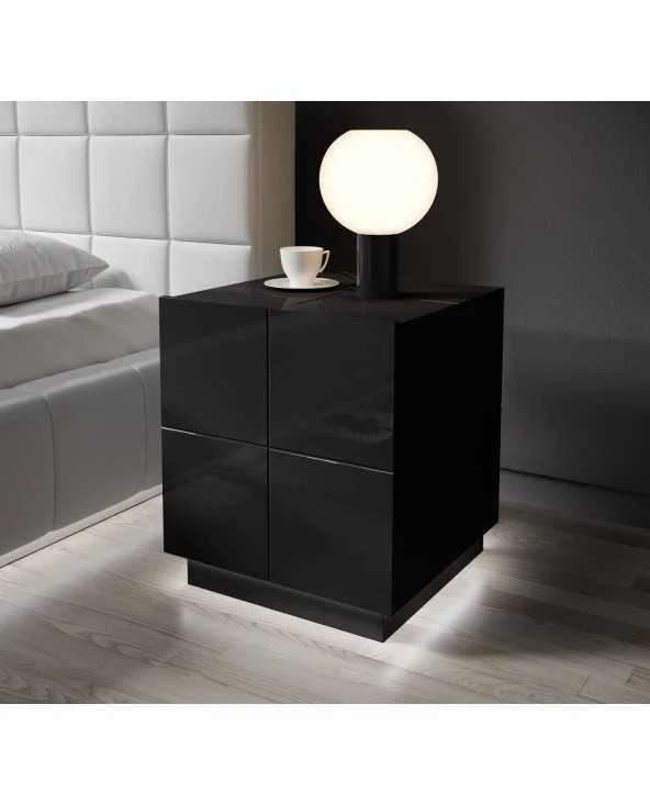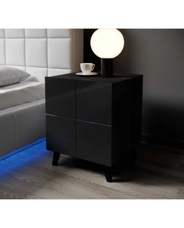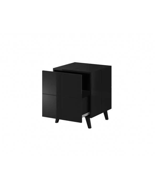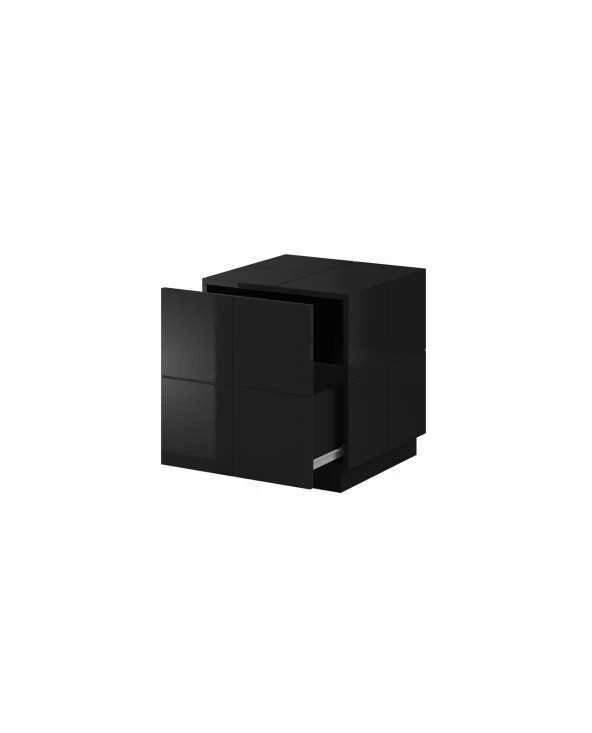 | Medžiaga | Šonai ir viršus: blizgi frezuota MDF plokštė Priekinės dalys / atvartai: blizgi frezuota MDF plokštė Kiti elementai: laminuota baldų plokštė |
