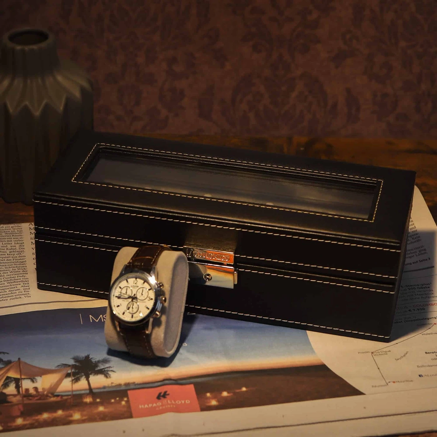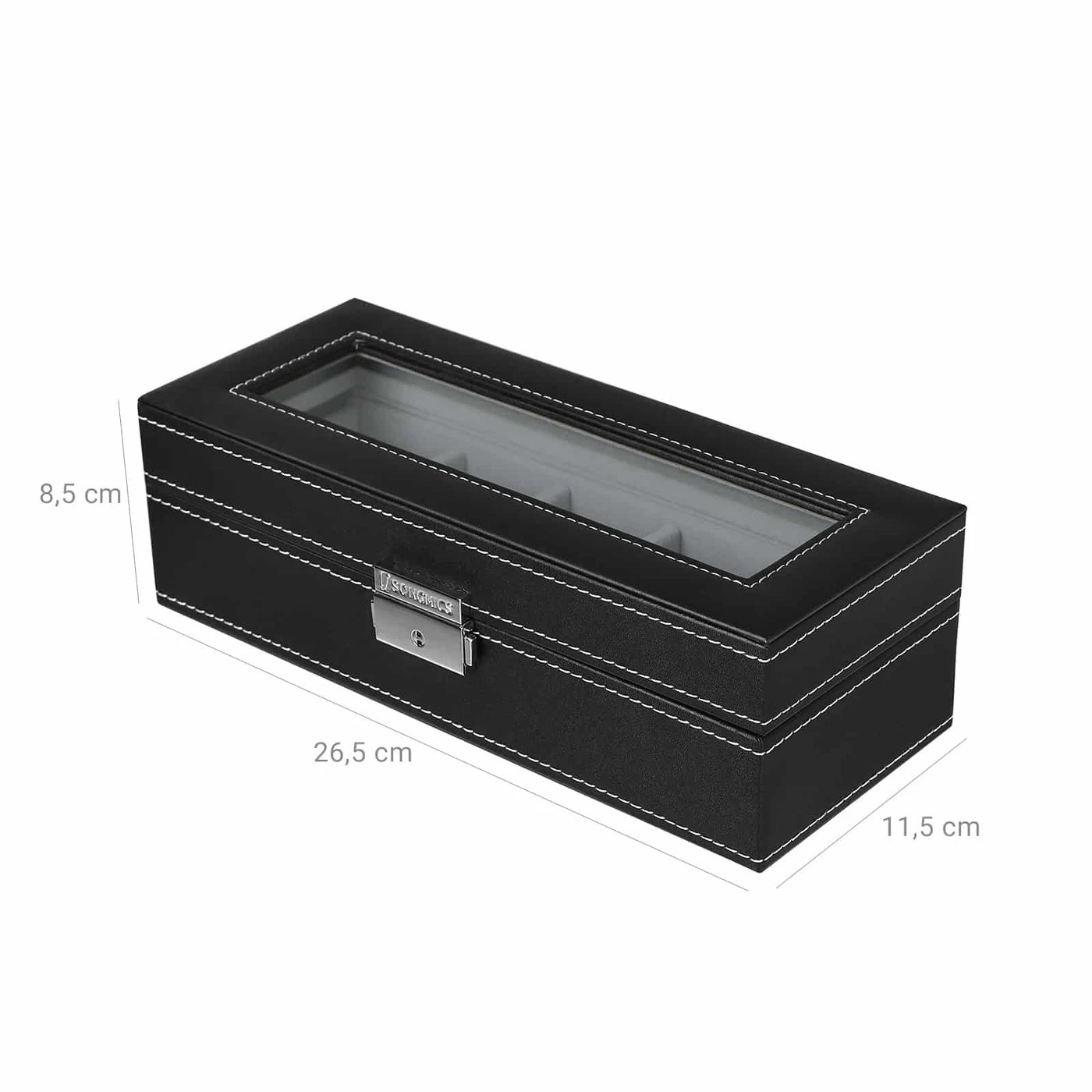 Aprašymas buvo automatiškai išverstas, gali pasitaikyti klaidų.Produkto aprašymas: Laikrodžio dėžutė su permatomu stiklu labai tinka rankiniams laikrodžiams laikyti. Skaidraus stiklo langas yra labai praktiškas, leidžiantis tiesiogiai matyti, kurie laikrodžiai yra korpuse. Dėl skiriamųjų grotelių ir paminkštintų laikrodžių pagalvėlių laikrodžius galima tvarkingai sudėti. Laikrodžių pagalvėlės turi labai malonų paviršių ir užtikrina gerą laikrodžių laikymą. Išėmus laikrodžio pagalvėles, dėklas tampa nedidele laikymo dėžute ar papuošalų dėžute, labai tinkančia sagoms, auskarams, žiedams, grandinėlėms ir kitiems papuošalams susidėti. Moderni ir patraukli išvaizda, apgalvotas dizainas, puikiai tiks kaip dovana jūsų draugams ir šeimoms, nesvarbu, moterims ar vyrams. Dydis - Gaminio matmenys: 26,5 x 11 x 8,5 cm - Skyriaus dydis: 4,5 x 9 cm - 5 pagalvės (kiekviena 4,5 x 7,5 x4 cm)Konservavimas ir priežiūra: - Laikrodžio dėžutę pastatykite vėdinamoje patalpoje, kurios temperatūra yra 10-40 ℃ ir nepalikite dėžutės ilgesniam laikui saulėje ar patalpose, kuriose yra daug drėgmės. - Dėmes ant paviršiaus galima nuvalyti šiek tiek drėgnu skudurėliu, saugokite, kad vanduo nepatektų į laikrodžio dėžutę. - Skysčius reikia nedelsiant pašalinti rankomis arba minkštu skudurėliu ir leisti paviršiui išdžiūti vėsioje temperatūroje. - Reguliariai naudokite specialias dirbtinės odos priežiūros priemones, kad ilgai blizga.- Nelenkite ir nespauskite dėžutės, kai naudojate ar nenaudojate.- Nelaikykite laikrodžio dėžutės su chemikalais.Pristatymo komplektas:- 1 x laikrodžio dėžutė- Be laikrodžių ir papuošalų