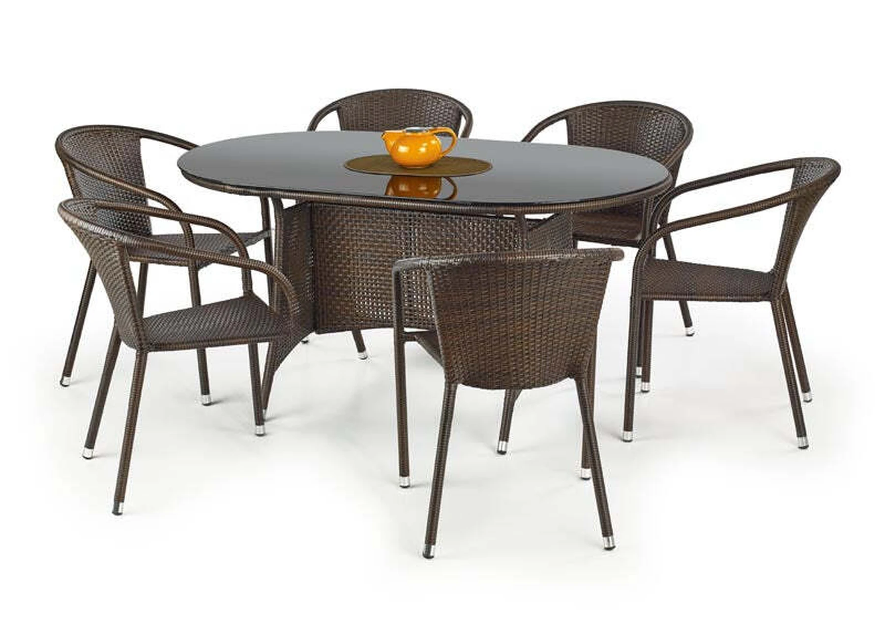 matmenys: 150/90/74 cm, medžiaga: stiklas / sintetinis rotangas, spalva: tamsiai ruda / juoda