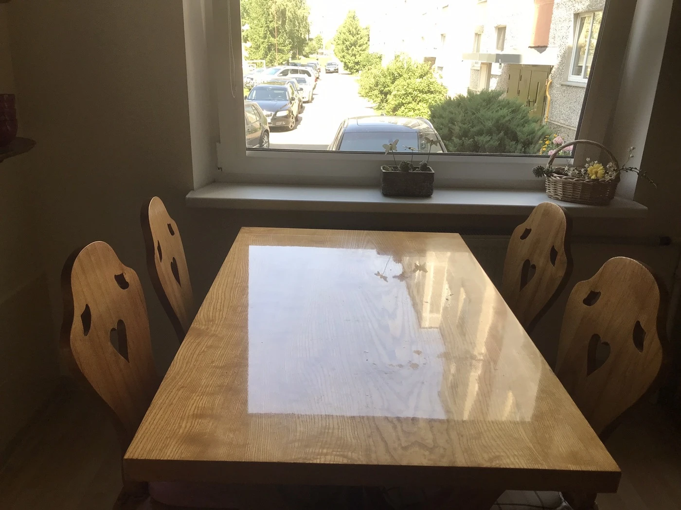 Stalo matmenys 108 / 70 cm. Mediena- uosio masyvas.
