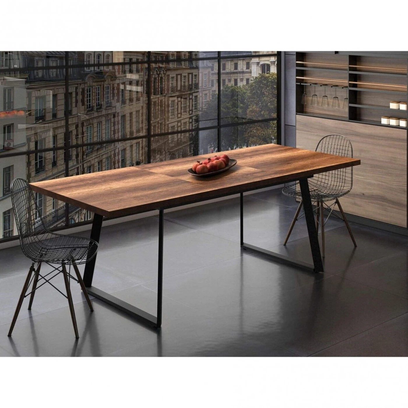 Patikimas nerūdijančio plieno rėmas, patogus išskleidimo mechanizmas ir tekstūruotas laminatas - stalas LAVINIA puikiai įsilies į modernų ar lofto stiliaus svetainės, studijos, valgomojo ar erdvios virtuvės interjerą. Ypatingas stalo dizaino akcentas - trapecijos formos kojos, kurios padidina konstrukcijos stabilumą.