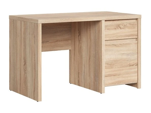 Modernaus dizaino rašomasis stalas su talpiu stalčiumi ir uždaromis lentynomis.