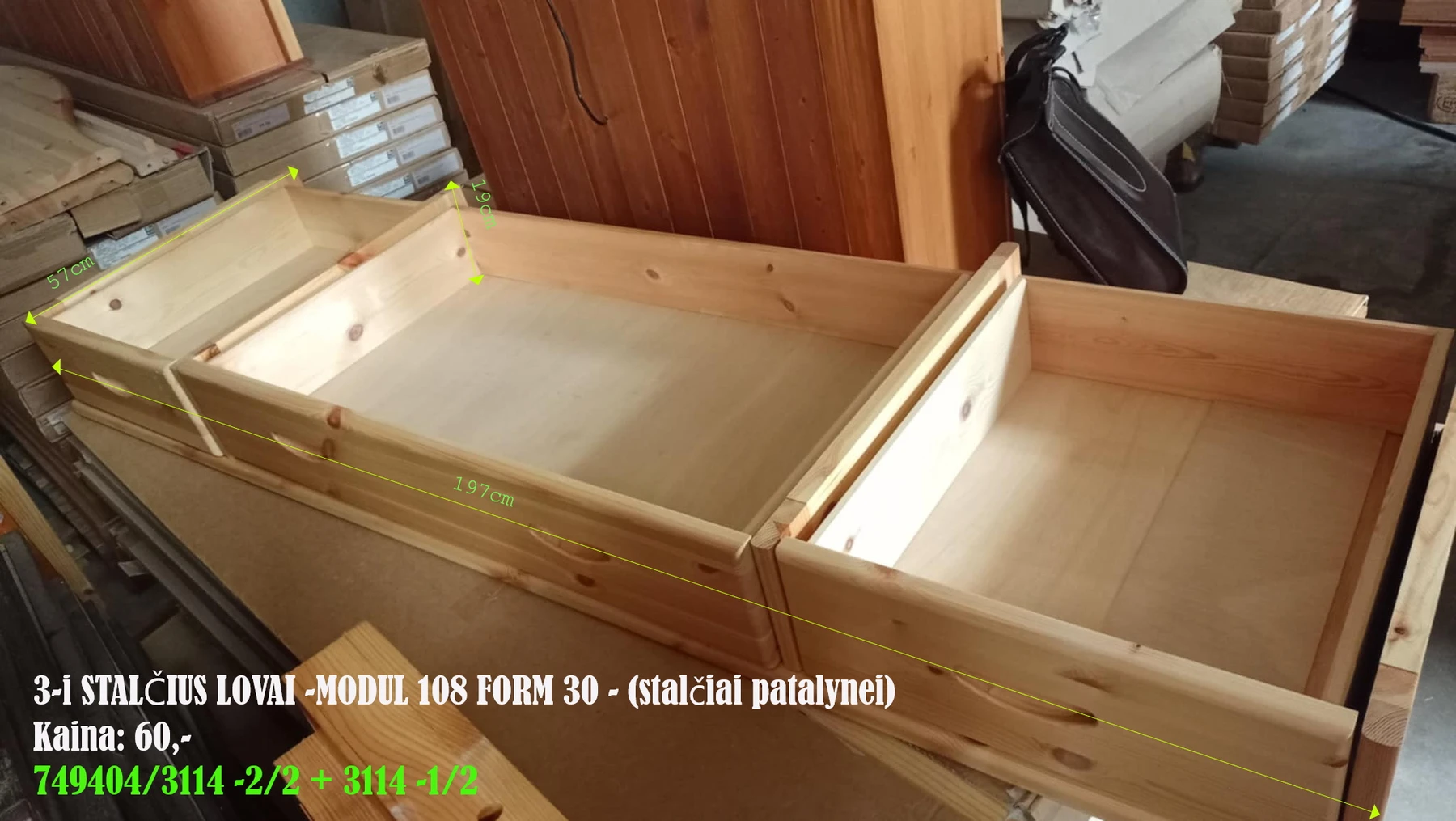 STALČIAI LOVAI - 3-i stalčius - MODUL 108 FORM 30 - stalčiai patalynei - - BALDAI MEDINIAI - GAMINTOJAS: H.E.P. Møbler DESIGN, DENMARK - BALDAI NAUJI, PAKUOTĖSE SU SURINKIMO SCHEMOMIS
