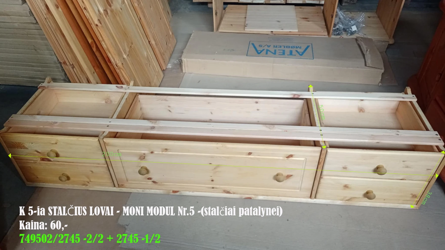 STALČIAI LOVAI - MONI MODUL Nr.5 - 5-ia stalčius patalynei - - BALDAI MEDINIAI - GAMINTOJAS: H.E.P. Møbler DESIGN, DENMARK - BALDAI NAUJI, PAKUOTĖSE SU SURINKIMO SCHEMOMIS