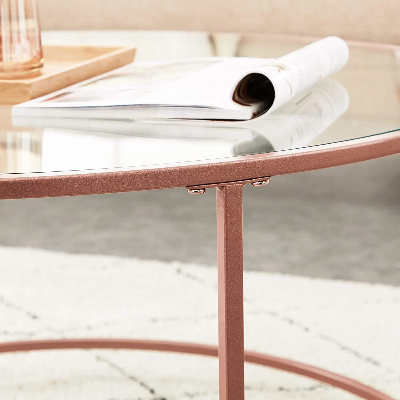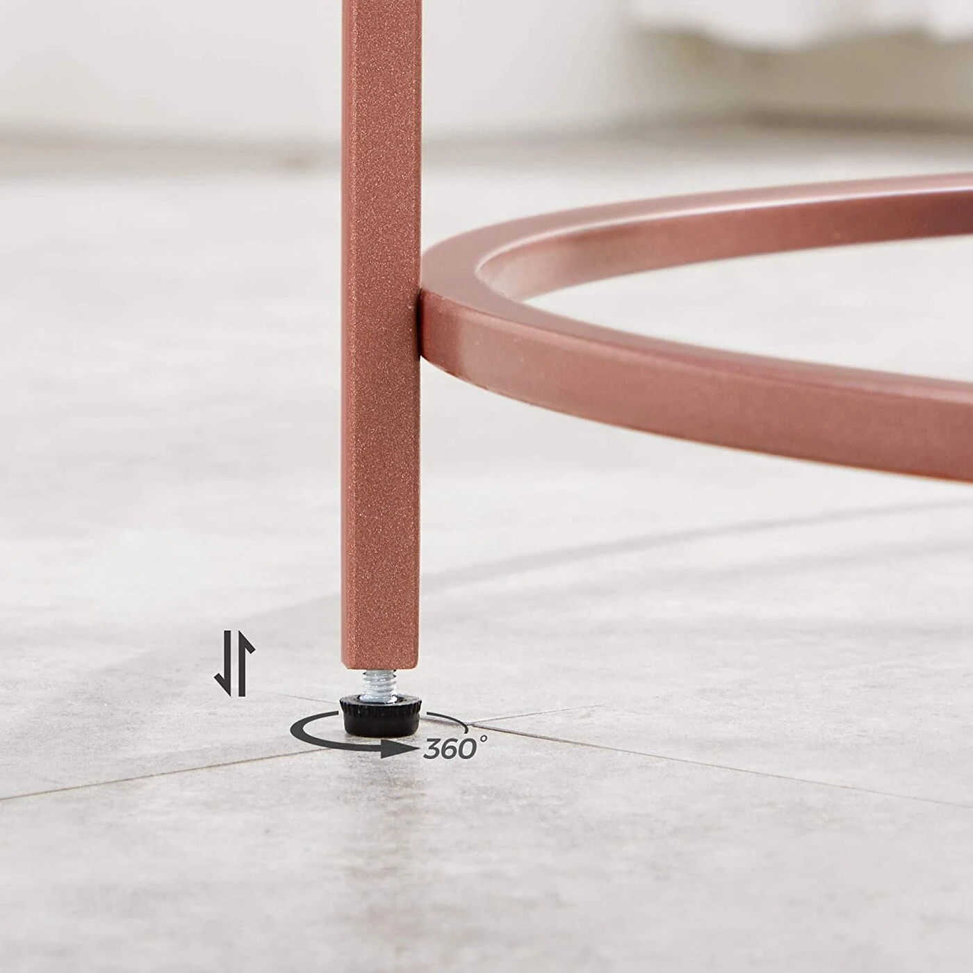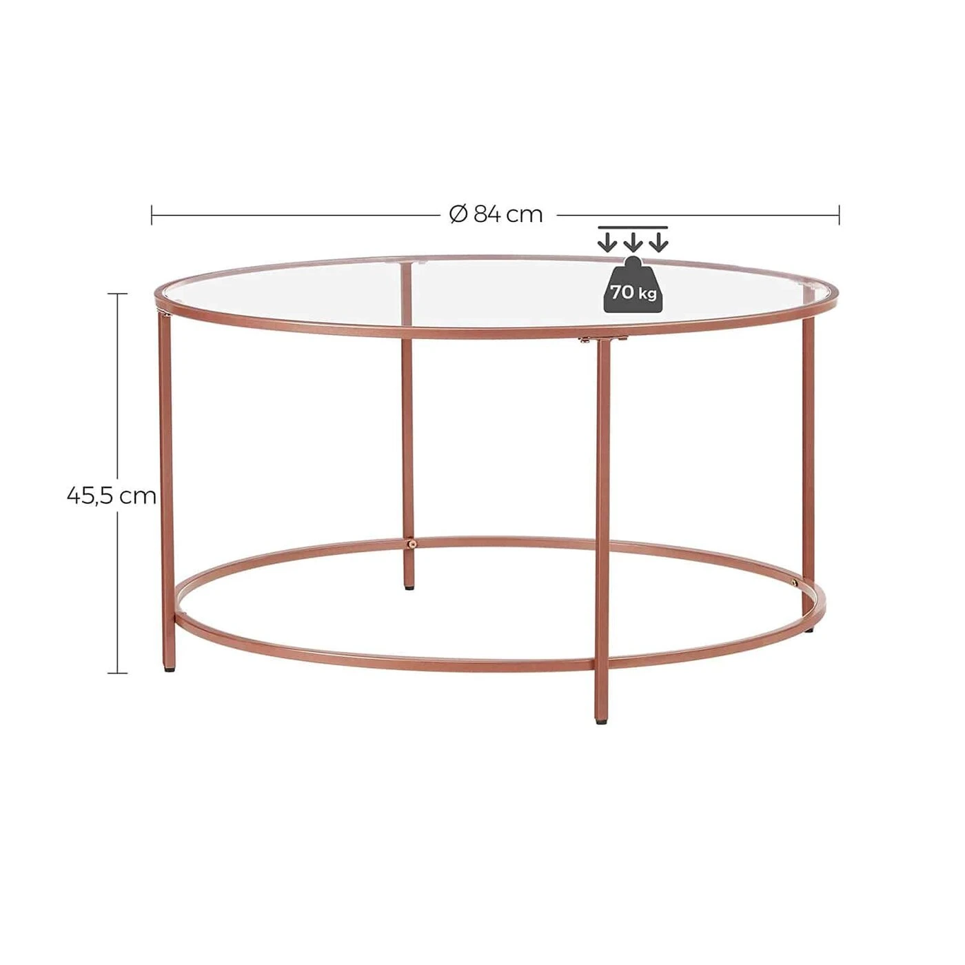 Aprašymas buvo automatiškai išverstas, gali pasitaikyti klaidų. Informacija apie gaminį: - Spalva: rožinis auksas - Medžiaga: plienas, grūdintas stiklas - Dydis: 84 x 45,5 cm (Ø x A) - Svoris: 11,5 kg - Maksimali statinė apkrova: 70 kgPristatymo apimtis: - 1 x šoninis staliukas - 1 x priedų paketas - 1 x vadovasVASAGLE Pastabos: - Saugumo sumetimais vaikams draudžiama lipti ant gaminio ar žaisti su juo.