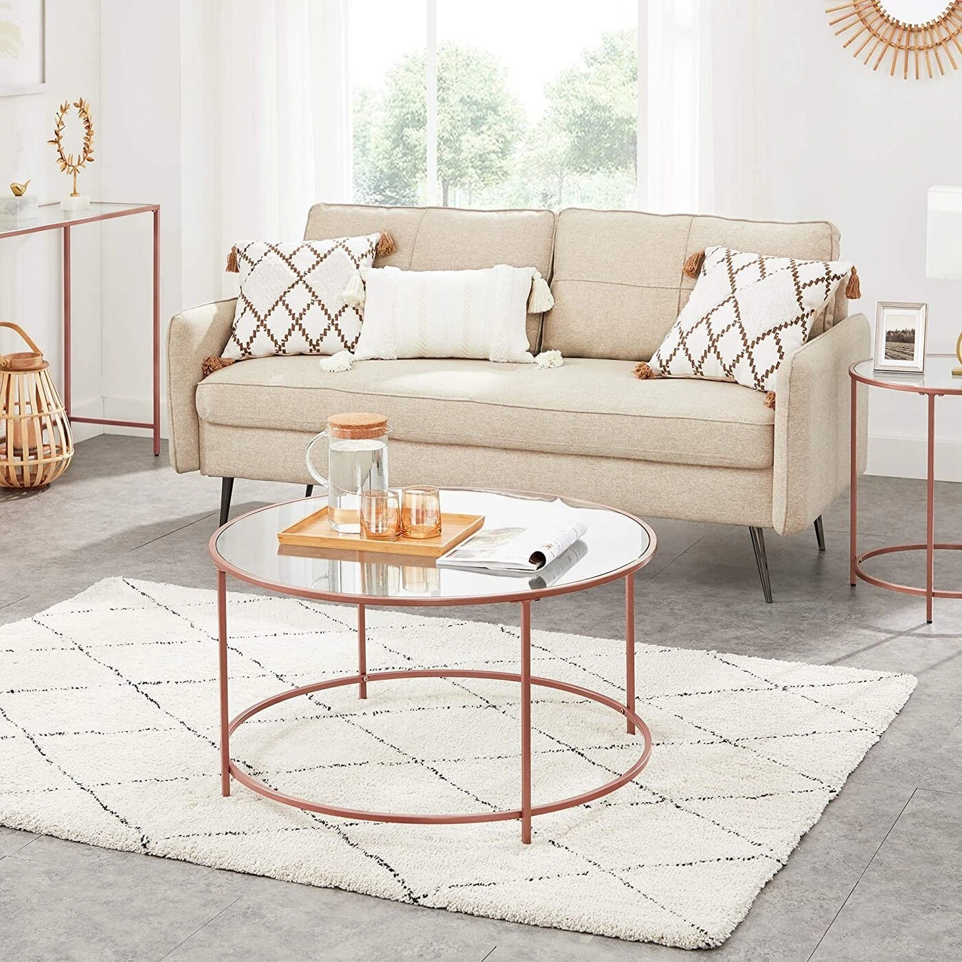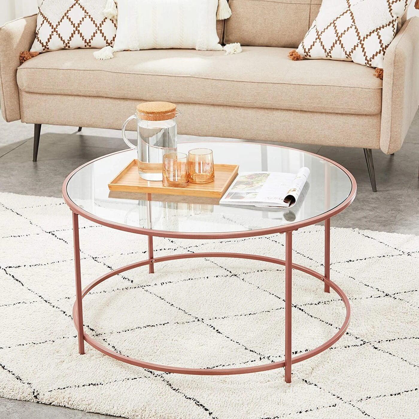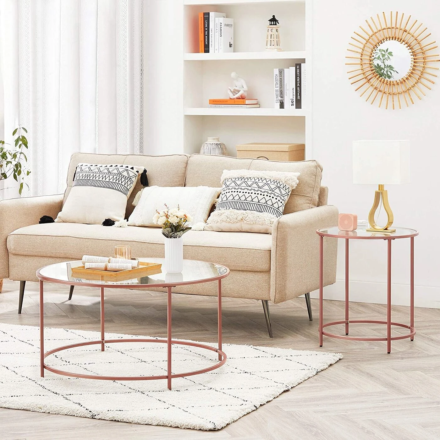 Aprašymas buvo automatiškai išverstas, gali pasitaikyti klaidų. Informacija apie gaminį: - Spalva: rožinis auksas - Medžiaga: plienas, grūdintas stiklas - Dydis: 84 x 45,5 cm (Ø x A) - Svoris: 11,5 kg - Maksimali statinė apkrova: 70 kgPristatymo apimtis: - 1 x šoninis staliukas - 1 x priedų paketas - 1 x vadovasVASAGLE Pastabos: - Saugumo sumetimais vaikams draudžiama lipti ant gaminio ar žaisti su juo.