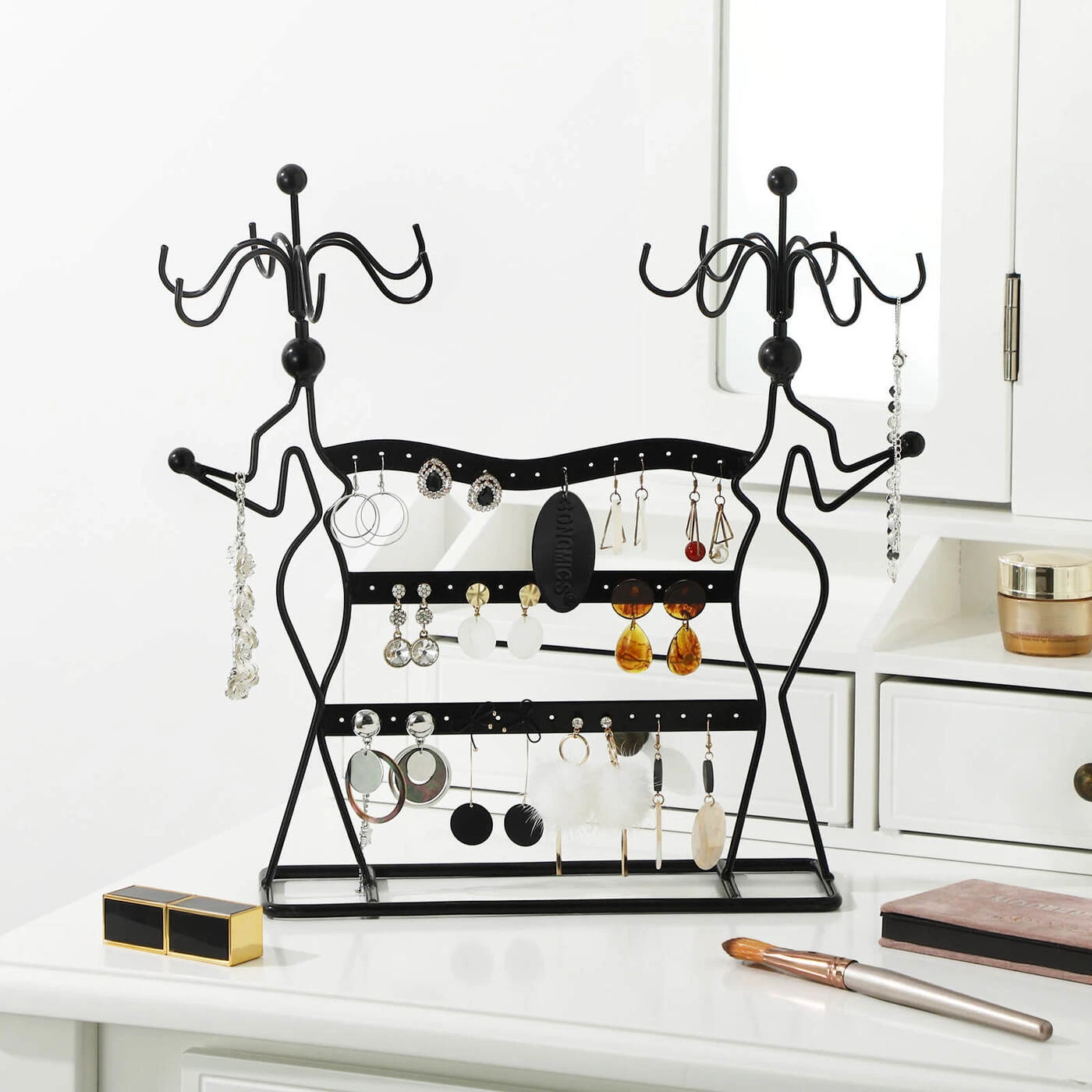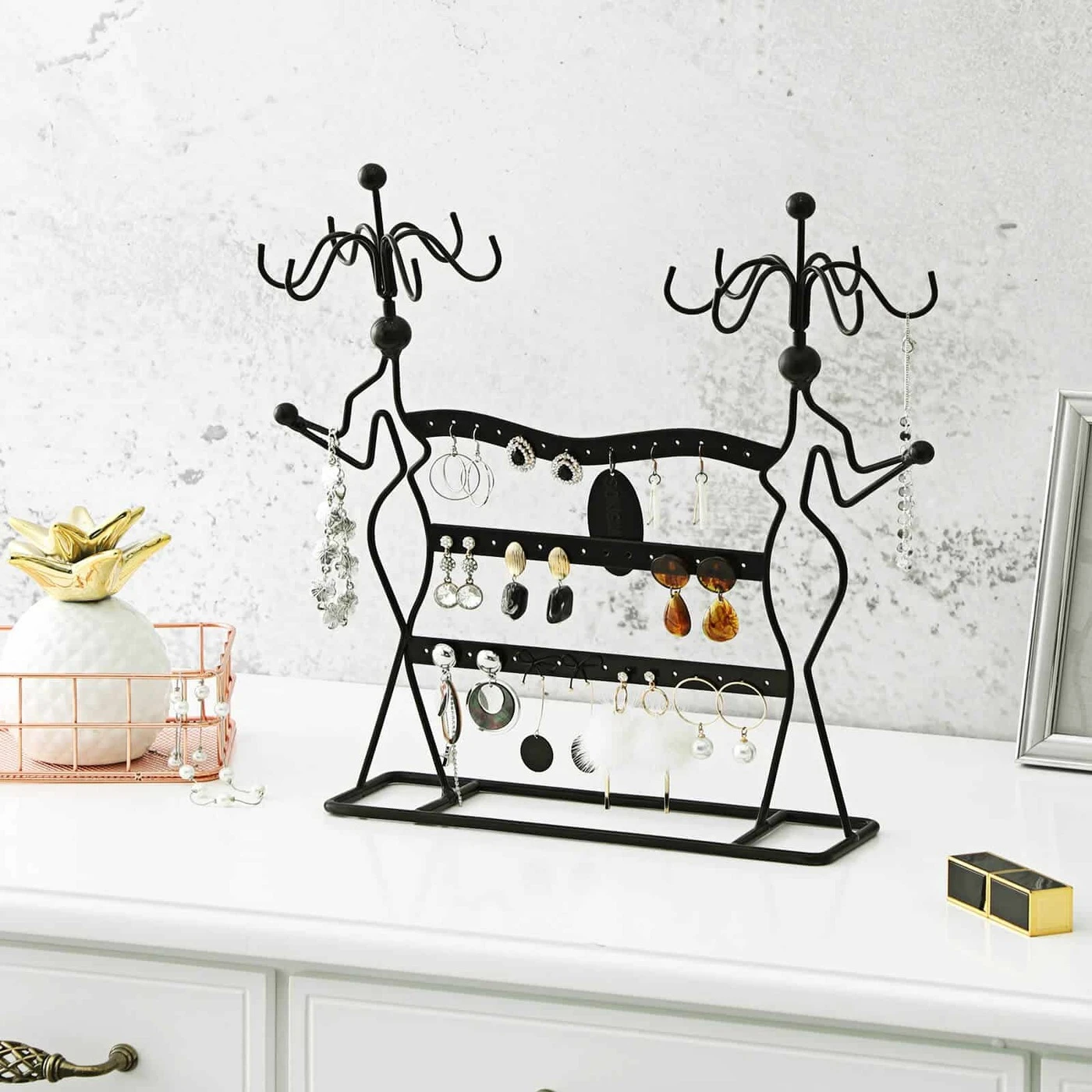 Aprašymas buvo automatiškai išverstas, gali pasitaikyti klaidų.Visur guli auskarai ir karoliai? O ar visada nerandate reikalingų papuošalų? Songmics papuošalų stovas siūlo jums idealų sprendimą, todėl nebereikia ilgų tinkamų papuošalų paieškų! Tai stabilus rėmas su pagrindu. Rėmas yra gerai suvirintas ir puikiai lakuotas, o tai pabrėžia romantišką charakterį. Paviršius padengtas milteliniu būdu, todėl patvarus. Elegantiškame papuošalų stove yra daug vietos auskarams, auskarams, apyrankėms, grandinėlėms ar net laikrodžiams. Visi jūsų lobiai yra optimaliai sukrauti ir visada paruošti po ranka. Dėl plataus pagrindo stovas yra stabilus ir neapvirsta. Papuošalų medis yra labai funkcionalus ir tuo pačiu vizualinis akcentas.Išsami informacija apie gaminį: - Spalva: juoda - Gaminio matmenys: 34,5 x 34 x 12,5 cm (P x A x G) - Atstumas tarp 2 horizontalių skylių: 1 cm Pristatymo komplektas: - 1 x papuošalų stovas