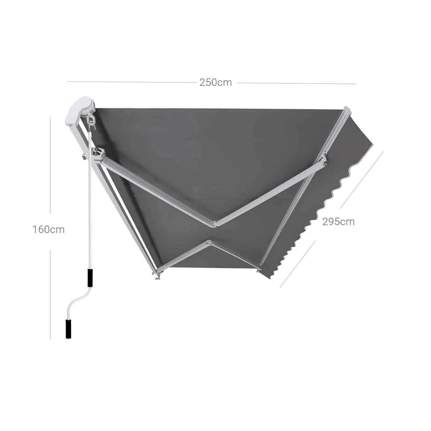 Aprašymas buvo automatiškai išverstas, gali pasitaikyti klaidų.Stilingas Aukštos kokybės Tvirtas Užsakydami būtinai nurodykite dienos telefono numerį. Jei kurjerių įmonė negali susisiekti su jumis jūsų nurodytu numeriu ir (arba) prekės bus grąžintos mums, jūs patirsite papildomų išlaidų, nes kurjeris taikys mums papildomą mokestį už neteisingą telefono numerį ir grąžintas pakuotes (nepristatomas). Ši sulankstoma markizė yra idealus pasirinkimas, kai reikia šešėlinės vietos terasoje, ypač kai norite atsipalaiduoti vasarą su šeima ar draugais. Galite patogiai kartu išsikepti šašlykų ar vakaroti. Šie tentų modeliai puikiai tinka kaip apsauga nuo saulės tokiai veiklai.Šarniuoti markizės pasižymi ypač dideliu stabilumu. Šios markizės puikiai tinka pakabinti prie sienos. Be to, SONGMICS šarnyrinės rankenos markizės pasižymi patvarumu. Visos medžiagos turi atitikti aukštus kokybės, ilgaamžiškumo ir dizaino standartus.Šarnyrinės rankenos markizės – viena populiariausių apsaugos nuo saulės sistemų rinkoje.Tentas pristatomas jums iš anksto surinktas ir dabar turi būti pritvirtintas prie betoninės namo sienos. Tam reikia kelių žmonių, nes gaminys sveria 22,8 kg. Jei jau turite ankstesnių techninių žinių, montavimas yra greitas ir paprastas. Kitu atveju galite pasamdyti profesionalą, kuris per trumpą laiką už jus sumontuos markizę Dėmesio: prieš užsakydami įsitikinkite, kad šios prekės dydis atitinka jūsų asmeninius poreikius ir ar jis tinkamas faktiniam naudojimui jūsų balkone ar terasoje tinkamas yra. Nenaudokite skiedinio ar ertmės sienelės kaip tvirtinimo paviršiaus. Ši medžiaga nesuteikia atramos, reikalingos tentui sumontuoti.