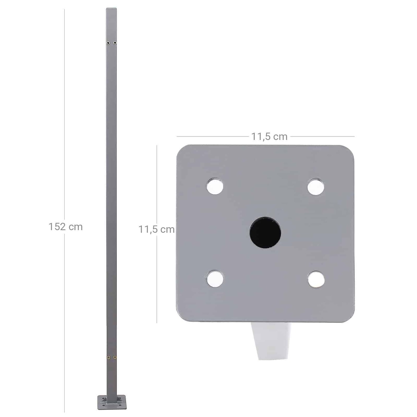 Aprašymas buvo automatiškai išverstas, gali pasitaikyti klaidų.Šoninė markizė jūsų sode būtų labai praktiška, tačiau nėra tinkamos sienos, ant kurios būtų galima montuoti apsaugą nuo saulės? Jokių problemų, šis palaikymo įrašas padės jums išbristi iš problemų. Tiesiog prijunkite jį prie šoninės markizės iš SONGMICS markizės ir turėsite privačią poilsio zoną! Išsami informacija apie gaminį: - Spalva: Pilka - Medžiaga: Milteliniu būdu dengta geležis - Dydis: 11,5 x 11,5 x 152 cm (P x P x A) - Svoris: 3,9 kg Pakuotės turinys: - 1 x šoninis tentų stulpelis - 1 x konteineris varžtams