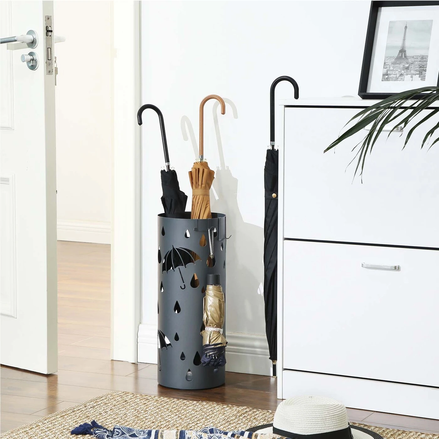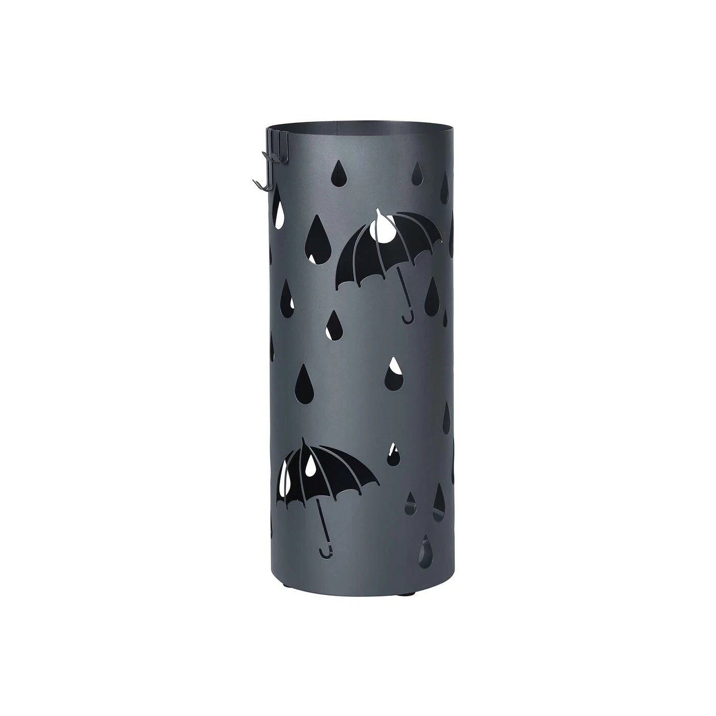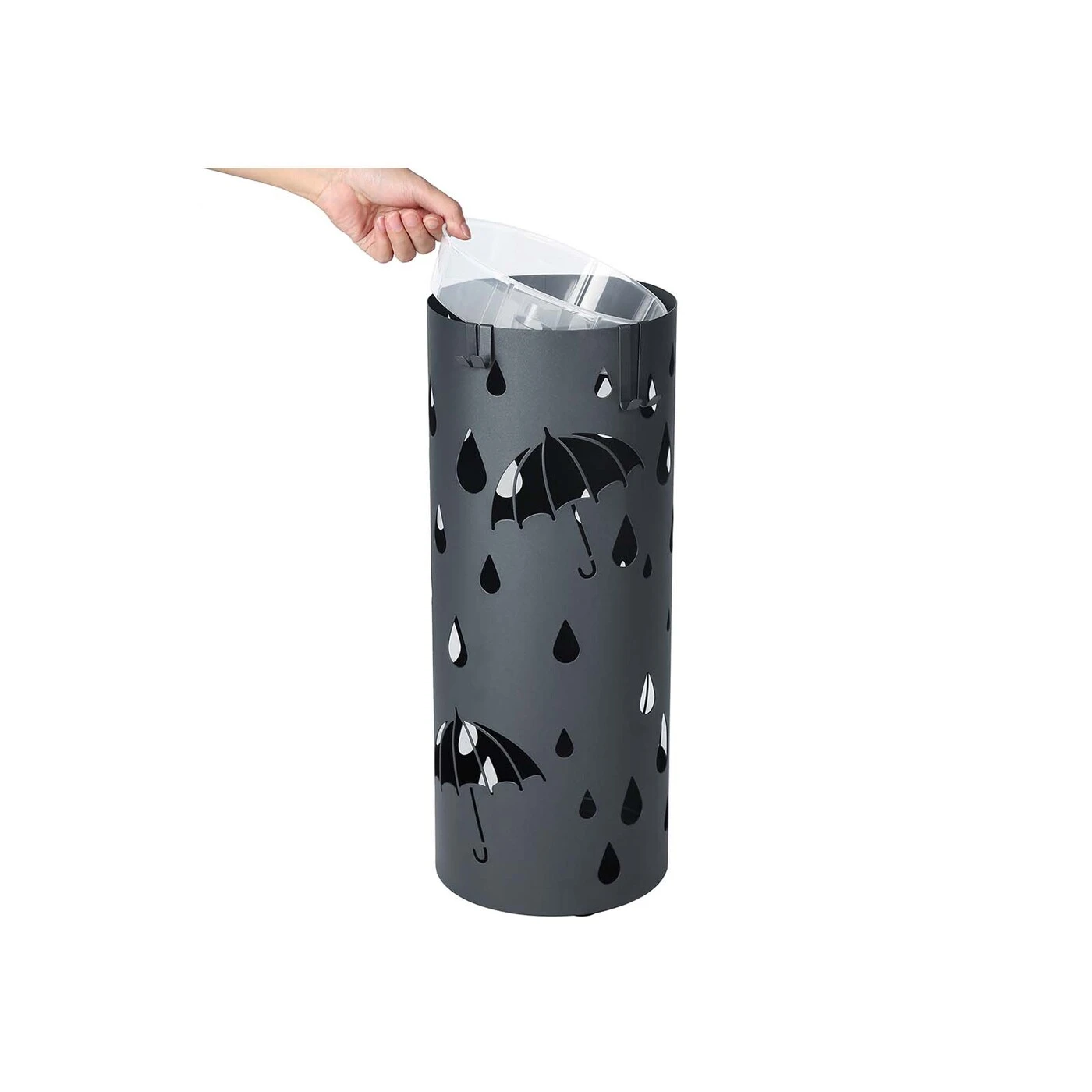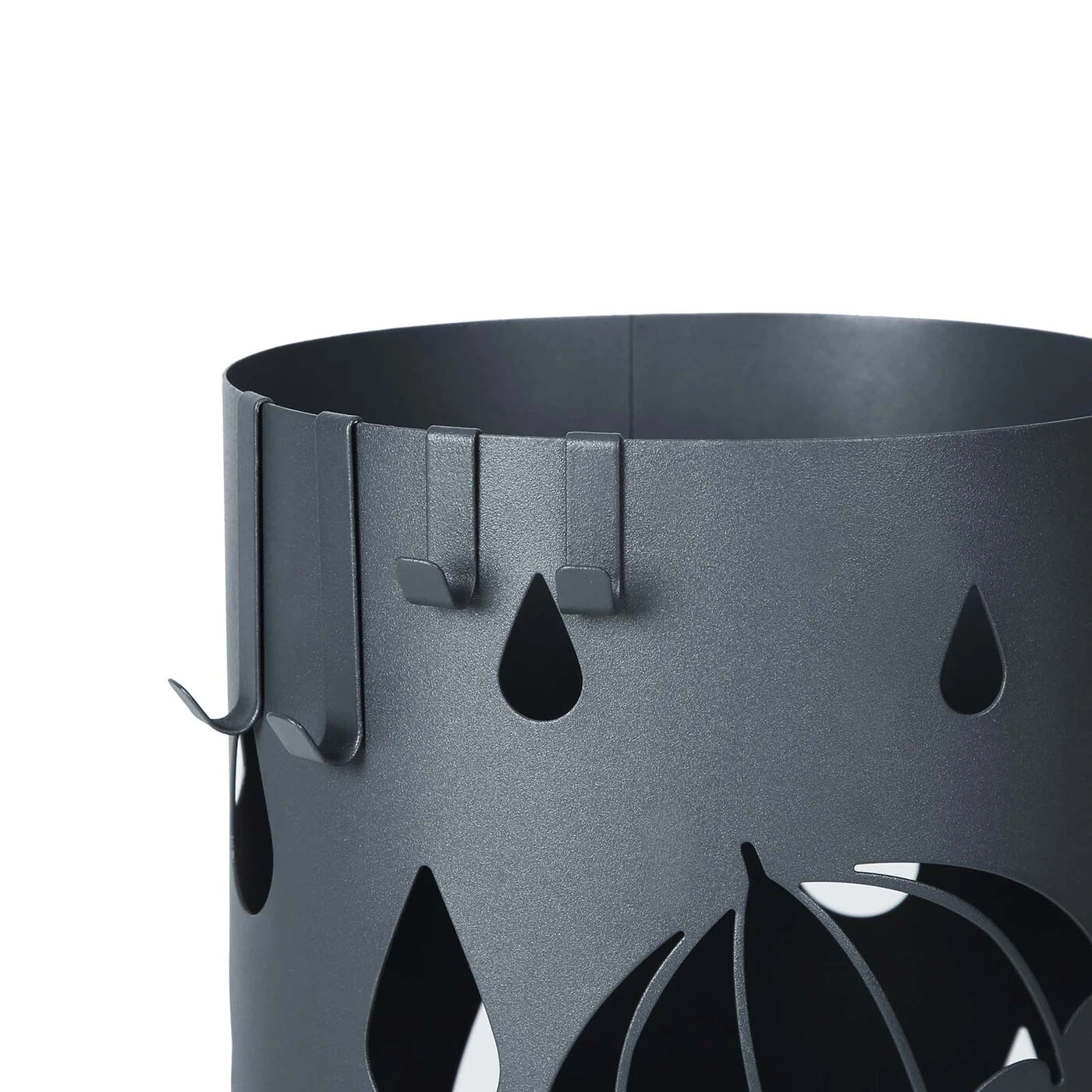 Aprašymas buvo automatiškai išverstas, gali pasitaikyti klaidų.Laikykite skėčius stilingai! Daugiau nedėkite skėčių ant žemės! Sudėkite juos į šį stovą ir padėkite į prieškambario kampą – paverskite tą kampą modernia ir elegantiška saugykla. Kai jūsų svečiai įžengs į jūsų namus, jie supras, kad jūs valdote savo gyvenimą! Šiame skėčių stove yra plastikinis padėklas, kuris sulaiko nuo skėčių lašantį vandenį. Taip išvengsite vandens balų ant grindų! Be to, šį dubenį galima lengvai išimti ir ištuštinti. Surinktu lietaus vandeniu laistykite savo vazoninius augalus ir dalinkitės su jais gamtos gėrybėmis.Informacija apie gaminį: Spalva: antracitas, matinis paviršius Medžiaga: metalas, plastikas Dydis: 49 x 19,5 cm (H x Ø) Svoris: 2 kg Pristatymo komplektas: 1 x skėčio stovas 1 x vandens surinkimo padėklas 4 x kabliukai