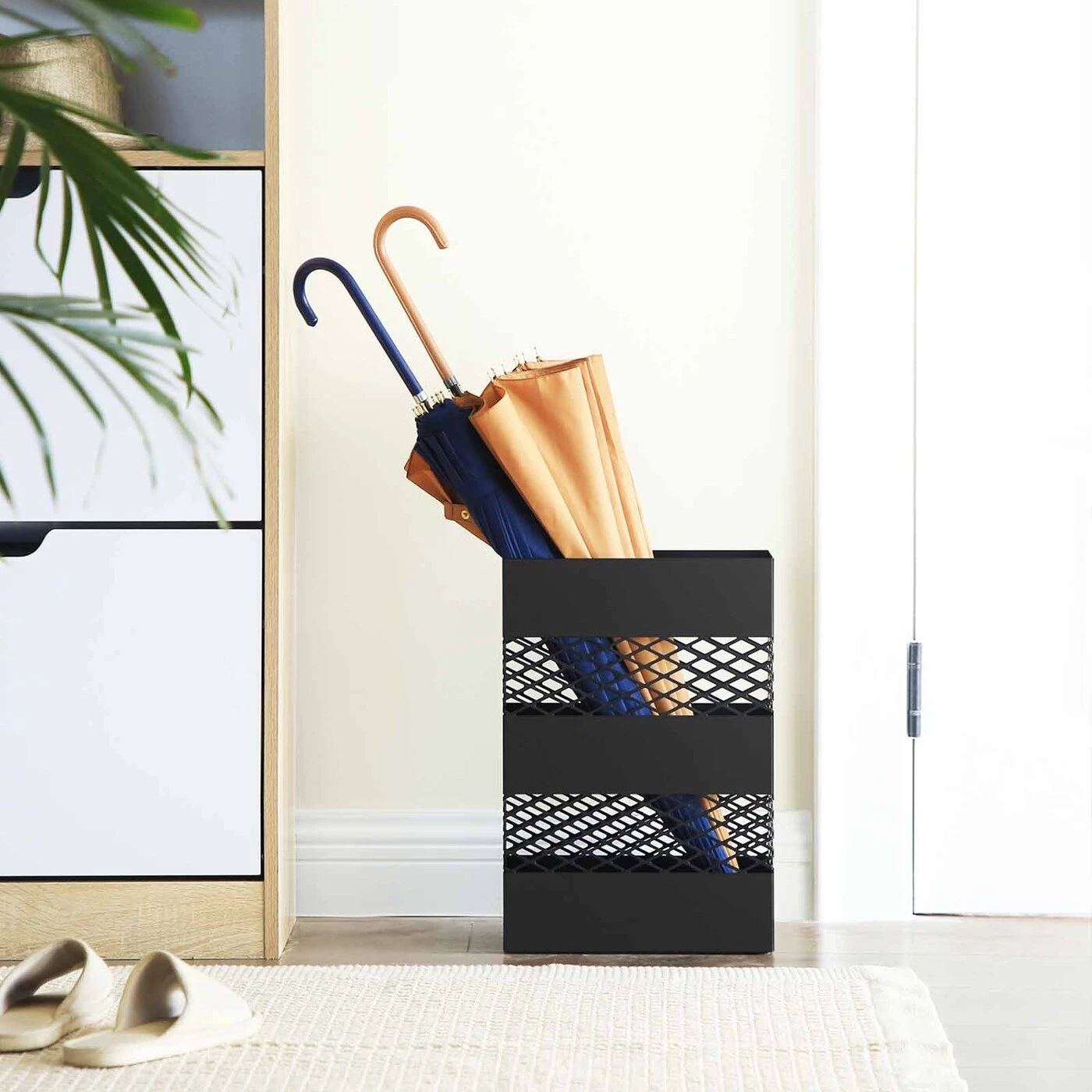 Aprašymas buvo automatiškai išverstas, gali pasitaikyti klaidų.Jokios netvarkos, jokio streso: permirkę lietuje ir grįžę namo sušlapę, padėkite savo skėtį į šį stilingą SONGMICS skėčių stovą – išliksite sausas ir išvengsite šlapios netvarkos. Sulaiko lašantį vandenį: šis skėčio stovas bus tiekiamas su nuimamu plastikinis nuvarvėjimo padėklas, kad ant grindų nepatektų vandens balų. Be to, šį dubenį lengva ištuštinti.Pagaliau jūsų skėčiai nebebus išmėtyti po namus! Įdėkite juos į šį skėčių stovą, kad būtumėte puikiai pasiruošę kitai lietingai dienai.Informacija apie gaminį: Spalva: juoda Medžiaga: plieninis rėmas su danga Dydis: 28 x 12 x 41 cm (P x P x A) Svoris: 2 kg Pristatymo komplektas: 1 x skėčio stovas 1 x vandens lašelių padėklas