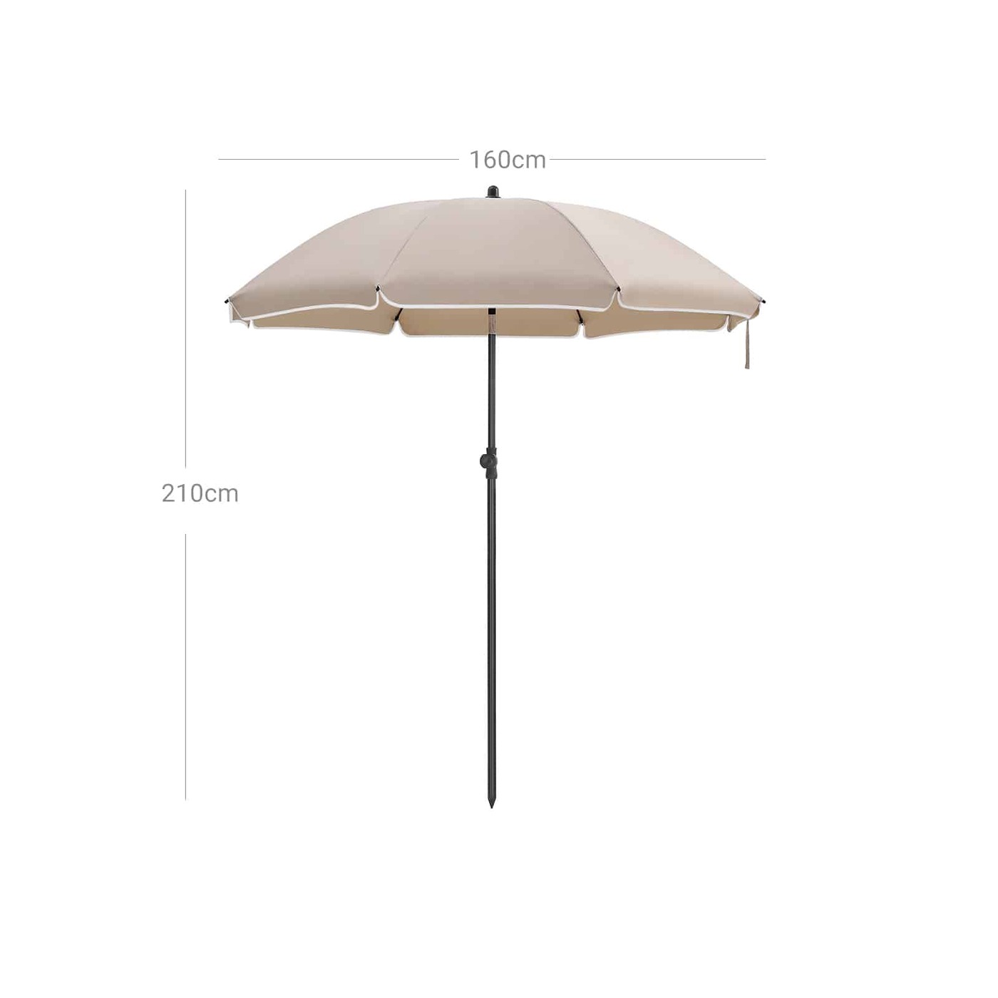 Aprašymas buvo automatiškai išverstas, gali pasitaikyti klaidų.Mėgaukitės gražiu oru pavėsyje! Lauko sezonas prasidėjo ir pats laikas aprūpinti savo sodą, terasą ar paplūdimio zoną tinkama apsauga nuo saulės: skėčiu! Kai po ilgų, šaltų žiemos dienų pagaliau susigrąžinate savo lauko erdvę ir pakviečiate draugus kepti kepsninę, atėjo puiki akimirka naudotis nauju skėčiu! Vasaros „būtina turėti“ Šį skėtį galima išlenkti iš abiejų pusių, todėl galėsite reguliuoti jį pagal paros laiką ir šviesos kritimo kampą. Pavėsio skersmuo – 1,6 metro, o aukštis – 2,1 metro. Po apsauga nuo saulės yra vietos 2-3 žmonėms. Skėčio stiebas taip pat pagamintas iš nerūdijančio plieno. Be to, poliesterio apsauginė šluostė užtikrina puikią UV apsaugą iki UPF 50+.Produkto detalės: - Medžiaga: milteliniu būdu dengtas plienas, 160 g/m² poliesteris - Aukštis: 2,1 m - Išlinkimo ilgis: 1,8 m - Horizontalus skersmuo: 1,6 m - Stulpo skersmuo: 22/25 mm, sienelės storis: 0,5 mm- Svoris: 1,6 kg Pristatymo komplektas:- 1 x skėčiais- 1 x nešiojimo krepšys SONGMICS Pastabos:- Stovas skėčiui į komplektą neįeina.- Naktį ir pučiant stipriam vėjui uždarykite skėtį.- Nerekomenduojama šio skėčio naudoti lyjant oras naudoti.