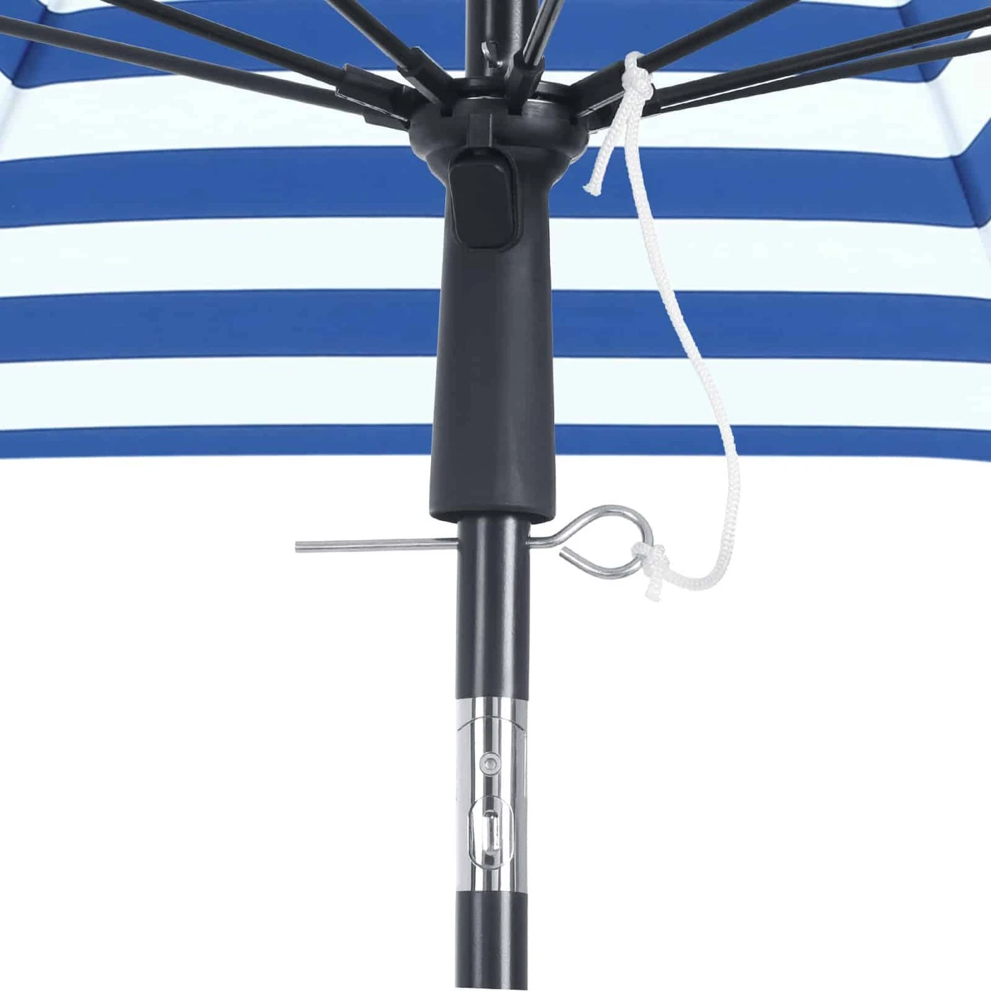Aprašymas buvo automatiškai išverstas, gali pasitaikyti klaidų.Mėgaukitės gražiu oru pavėsyje! Lauko sezonas prasidėjo ir metas keliauti į sodą, terasą ar paplūdimį! Bet saugokis! Pagalvokite apie tinkamą apsaugą nuo saulės! Kai po ilgų, šaltų žiemos dienų pagaliau susigrąžinate savo lauko erdvę ir pasikviečiate draugus ant grotelių, atėjo puiki akimirka pasinaudoti naujuoju SONGMICS skėčiu! Vasarą būtina turėti Šį skėtį galima lenkti į kairę ir į dešinę. Taigi galite pritaikyti jį prie paros laiko ir šviesos kritimo kampo. Skėčio skersmuo 1,6 m, aukštis 2,1 m. Po apsauga nuo saulės telpa 1-2 žmonės. Skėčio stiebas taip pat pagamintas iš nerūdijančio plieno. Be to, poliesterio apsauginė šluostė užtikrina puikią UV apsaugą iki UPF 50+.Išsami informacija apie gaminį: - Spalva: mėlynos ir baltos juostelės - Medžiaga: milteliniu būdu dengtas plienas, 160 g/m² poliesteris, stiklo pluoštas - Aukštis: 2,1 m - Lanko ilgis: 1,8 m - Ø gaubtas: 1,6 m - Ø gaubtas: 22 /25 mm, sienelės storis: 0,5 mm- Svoris: 1,6 kg Pristatymo komplektas:- 1 x skėtis- 1 x nešiojimo krepšys SONGMICS Pastabos:- Stovas skėčiui į komplektą neįeina.- Uždarykite skėtį naktį ir pučiant stipriam vėjui.- Jis nerekomenduojama naudoti šio skėčio lietingu oru.Produkto aprašymas