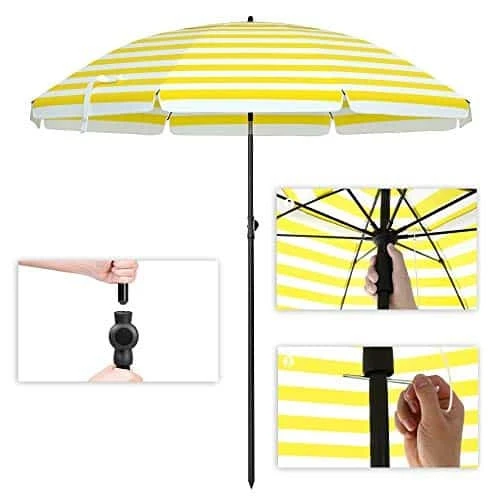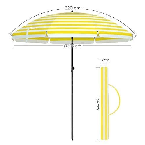 Aprašymas buvo automatiškai išverstas, gali pasitaikyti klaidų.Mėgaukitės gražiu oru pavėsyje! Lauko sezonas prasidėjo ir pats laikas aprūpinti savo sodą, terasą ar paplūdimio zoną tinkama apsauga nuo saulės: skėčiu! Kai po ilgų, šaltų žiemos dienų pagaliau susigrąžinate savo lauko erdvę ir pakviečiate draugus kepti kepsninę, atėjo puiki akimirka naudotis nauju skėčiu! Vasaros „būtina turėti“ Šį skėtį galima išlenkti iš abiejų pusių, todėl galėsite reguliuoti jį pagal paros laiką ir šviesos kritimo kampą. Pavėsio skersmuo – 1,8 metro, o aukštis – 2,3 metro. Po apsauga nuo saulės yra vietos 3-4 žmonėms. Skėčio stiebas taip pat pagamintas iš nerūdijančio plieno. Be to, poliesterio apsauginė šluostė užtikrina puikią UV apsaugą iki UPF 50+. Be to, jame yra keletas ventiliacijos angų, kurios nukreipia vėją, todėl sodo skėtis yra stabilesnis.Išsami informacija apie gaminį: - Medžiaga: milteliniu būdu dengtas plienas, 160 g/m² poliesteris - Aukštis: 2,3 m - Išlinkimo ilgis: 2 m - Horizontalus skersmuo: 1,8 m - Stulpo skersmuo: 22/25 mm, sienelės storis: 0,5 mm- Svoris: 2 kgPakuotės turinys:- 1 x skėčiais- 1 x nešiojimo krepšys SONGMICS Pastabos:- Skėčio stovas neįeina.- Naktį ir pučiant stipriam vėjui skėtį uždarykite.- Lietingu oru šio skėčio naudoti nerekomenduojama.