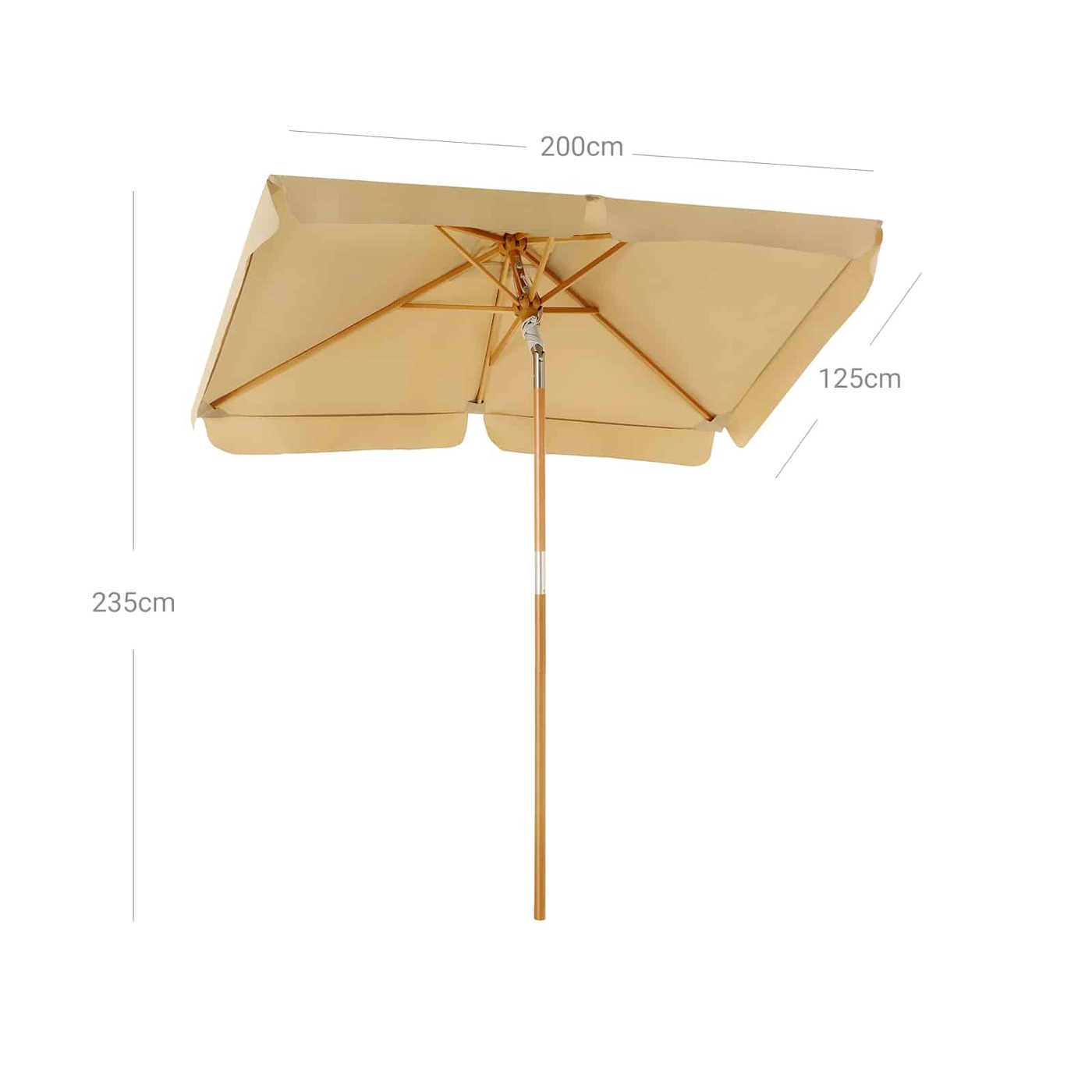 Aprašymas buvo automatiškai išverstas, gali pasitaikyti klaidų.Šilta saulė, mėlynas dangus, grynas oras, nuostabi gamta... Ko lauki? Laikas atsipalaiduoti balkone! Bijote stiprių saulės spindulių? Nesijaudink. Tiesiog atidarykite šį SONGMICS skėtį ir mėgaukitės gražiu oru pavėsyje! Šio skėčio akcentai: - Šis stačiakampis, 200 x 125 cm skėtis puikiai tinka balkone - Puikiai apsaugo nuo UV spindulių iki UPF 50+ - Sulankstymo funkcija leidžia pakreipti sodo skėtį taip, kad jis visada būtų ant užmetimų. šešėlis tinkamoje vietoje - Skėčio stulpas pagamintas iš tvirtos buko medienos - 6 skėčio šonkauliai pagaminti iš aukštos kokybės ir tvirtos kietmedžio - Audinys nuo saulės, pagamintas iš 180 g/m² poliesterio audinio, žada ilgą tarnavimo laiką - Skėčio stulpelis lengvai atidaromas ir uždaromas praktišku laidu - Skėčio stiebas susideda iš 2 stulpų, kuriuos galima lengvai susukti - medinė konstrukcija suteikia jūsų sodui šilto prisilietimoPrekės informacija: - Spalva: taupe - Medžiaga: skėčio šakelė iš buko medienos, skėčio briaunelės iš kietmedžio, 180 g/m² poliesterio audinys - Aukštis: 2,35 m - Skėčio audinio dydis: 200 x 125 cm - Ø skėčio kotas: 38 mm - Svoris: 6 kg Pristatymo komplektas:- 1 x skėtis- 1 x instrukcija (DE,EN,FR,ES,IT)SONGMICS Pastabos:- Skėčio stovas neįeina.- Nenaudokite jėgos, kad atidarytumėte skėtį, bet švelniai ir lėtai.- Vėjuotomis dienomis uždarykite skėtį, kad nepažeistumėte.- Apsaugokite gaminį dangteliu (nepridedamas), kad užtikrintumėte ilgesnį tarnavimo laiką.