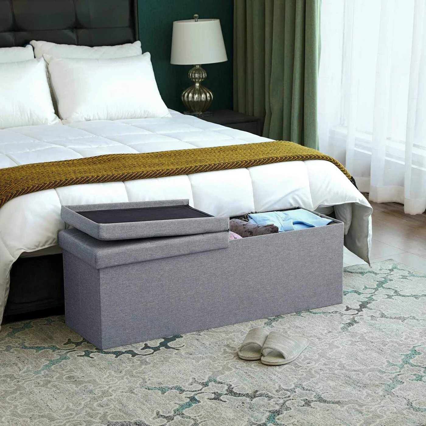 Aprašymas buvo automatiškai išverstas, gali pasitaikyti klaidų.Šis geriausio Chesterfield stiliaus su įprastomis audinio klostėmis suoliukas yra prieinamas garsių anglų modelių variantas. Užvalkalas iš šviesiai pilkos lino imitacijos suteikia baldui papildomo žavesio ir užtikrina, kad jis ypač patvarus. Sutaupysite daugiau vietos nei sofa ar drabužių spinta Užuot pirkę kitą sofą papildomai sėdėti svetainėje arba naują spintą, kad miegamajame būtų daugiau vietos, galite būti „vienu dydžiu mažesniu“ su šia kėdute. Padėkite jį priešais savo sofą arba padėkite patogius minkštus baldus prie lovos kojos ir įdėkite patalynę ar pižamą. Stilingą dėžę su vyriais lengva atidaryti ir uždaryti. MDF konstrukcija taip pat užtikrina stabilų laikymą, todėl ant krūtinės vienu metu gali atsisėsti du ar trys žmonės iki 300 kg (statinė apkrova). SONGMICS turi daug daugiau prieinamų ir protingesnių gyvenimo idėjų: žiūrėti yra aiškiai leidžiama!Prekės informacija: - Spalva: šviesiai pilka - Medžiaga: lino imitacija, MDF (vidutinio tankio medienos plaušų plokštė), putplastis - Dydis: 110 x 38 x 38 cm (P x G x A) - Svoris: 9,7 kg - Maksimali keliamoji galia: 300 kg (statinė apkrova ) Pakuotės turinys: - 1 x Suoliukas