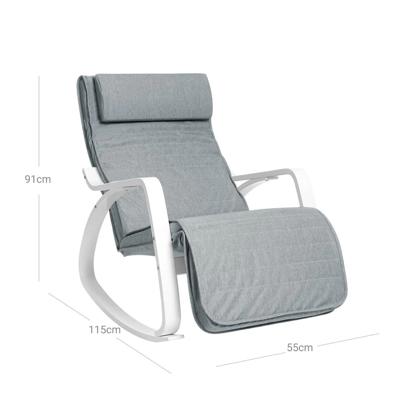 Aprašymas buvo automatiškai išverstas, gali pasitaikyti klaidų.Labiau atsipalaidavęs nei bet kada Ši poilsio kėdė turi 5 kryptimis reguliuojamą kojų atramą ir ypač minkštą paminkštinimą, kuris užtikrina aukštą komforto lygį. Jūsų vaikai šauksis šio fotelio ir norės ant jo žiūrėti juokingus animacinius filmus. Be to, šioje supamojoje kėdėje yra tvirtas beržo medžio rėmas, o viduje sutvirtintas metalinis rėmas, todėl galėsite saugiai siūbuoti pirmyn ir atgal. Nelaukite ilgiau ir atsineškite šią patogią supamą kėdutę namo. Laikas atsipalaiduoti! Prekės detalės: - Spalva: šviesiai pilka - Medžiaga: beržas, metalinis rėmas viduje, porolono paminkštinimas, užvalkalas iš lino imitacijos - Dydis: 67 x 115 x 91 cm (P x P x A) - Svoris: 9,8 kg - Maks. statinė apkrova: 150 kgPristatymo komplektas: - 1 x supamoji kėdė - 1 x instrukcija (DE, EN, IT, FR, ES) SONGMICS Pastabos: - Surinkdami neužveržkite varžtų iš karto. Tik įsukus visus varžtus reikia juos atsargiai priveržti.- Nepalikite gaminio lauke ilgam laikui.