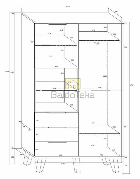 Plotis/Aukštis/Gylis: 100/174/40 cm.