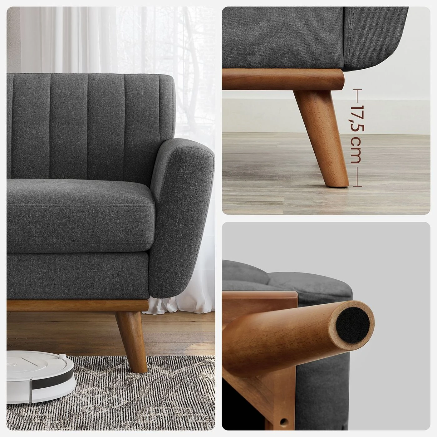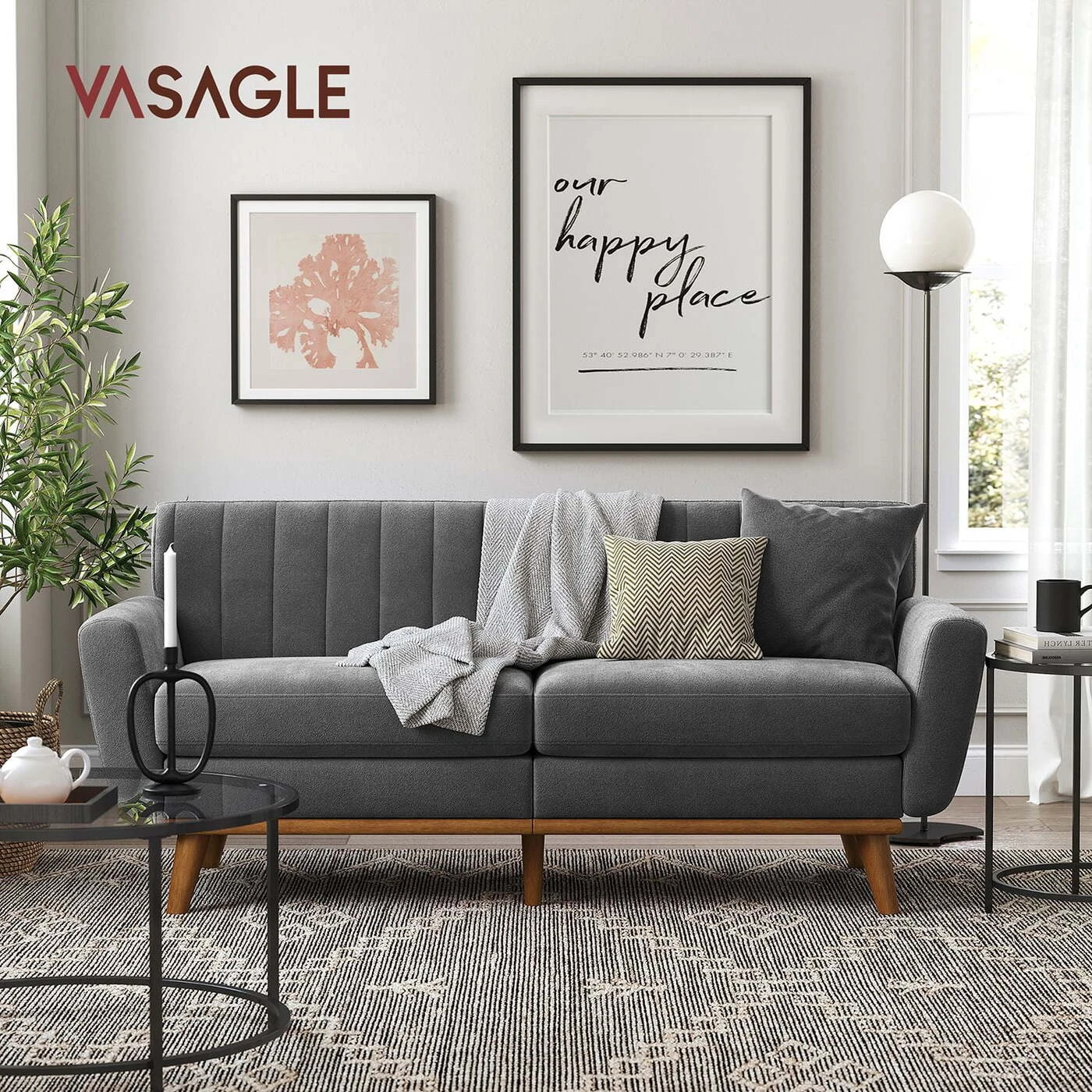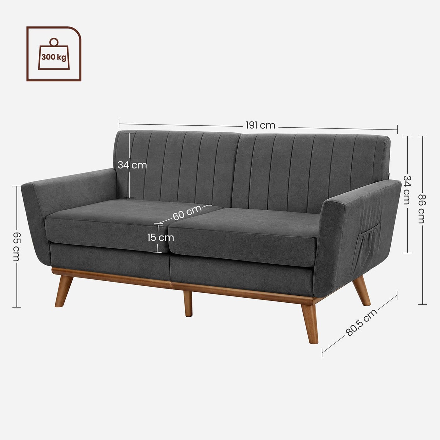 Aprašymas buvo automatiškai išverstas, gali pasitaikyti klaidų.Ši amžiaus vidurio modernaus stiliaus sofa yra ne tik patogi, bet ir tikrai traukianti akį bei puikiai tinka tiems, kurie mėgsta minimalistinį dizainą. Jis stovi ant medžio masyvo pagrindo su kūginėmis kojelėmis ir apvyniotas patvariu poliesterio audiniu, todėl gali lydėti jus ilgus metus. Be abejo, atsižvelgiama į patogumą: itin stora sėdynės pagalvė, minkštas užvalkalas ir didelis sėdynės gylis. 60 cm suteiks jums daug jaukumo. Šią elegantišką sofą galite pastatyti savo namuose, namų biure ar biure.Išsami informacija apie gaminį: - Spalva: Pilka - Medžiaga: Poliesterio audinys, putplasčio paminkštinimas, fanera, gumos mediena - Dydis: 191 x 80,5 x 86 cm (P x P x A) - Sėdynės gylis: 60 cm - Atlošo aukštis: 34 cm - Porankis aukštis (nuo grindų): 65 cm - Svoris: 44 kg - Maks. Bendra statinė apkrova: 300 kg Pristatymo apimtis:- 1 x sofa- 1 x priedų pakuotė- 1 x instrukcijaVASAGLE Pastabos:- Šis gaminys pristatomas 2 pakuotėmis. Jei iš pradžių turėtumėte gauti tik 1 paketą, prieš nustatydami palaukite antrojo paketo. Surinkite sofą, kai bus pristatytos abi pakuotės.- Sėdynės pagalvėlė bus pristatyta vakuuminėje pakuotėje. Išpakavus padėkite į saulę gerai vėdinamoje vietoje ir paglostykite, kad greičiau grįžtų į pradinį dydį.