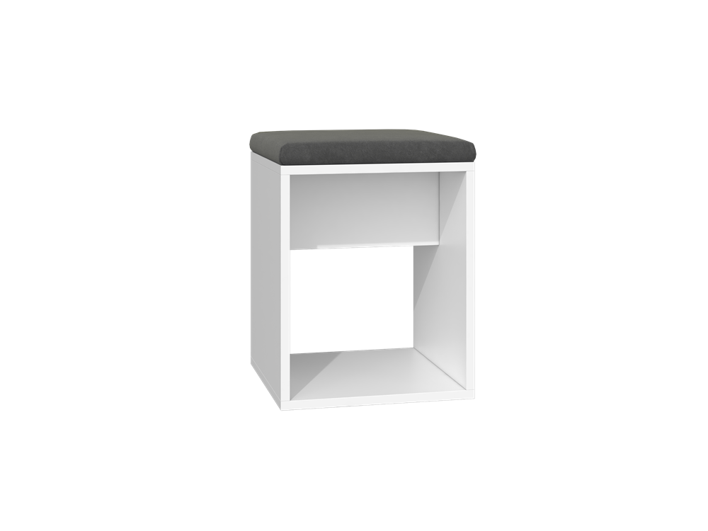 taburetė puikiai tiks Jūsų virtuvei ar valgomajam;pagaminta iš laminuotos medžio drožlių plokštės;taburetės spalva - balta, sėdimoji, paminkštinta dalis - pilka;taburetės išmatavimai: aukštis - 51 cm, plotis - 35 cm, gylis - 35 cm;