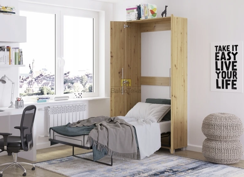 Be čiužinio. Lovai reikalingas 90 x 200 x max aukščio 15 cm čiužinys.