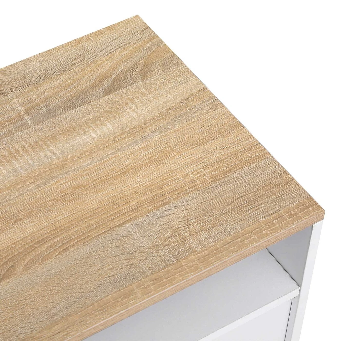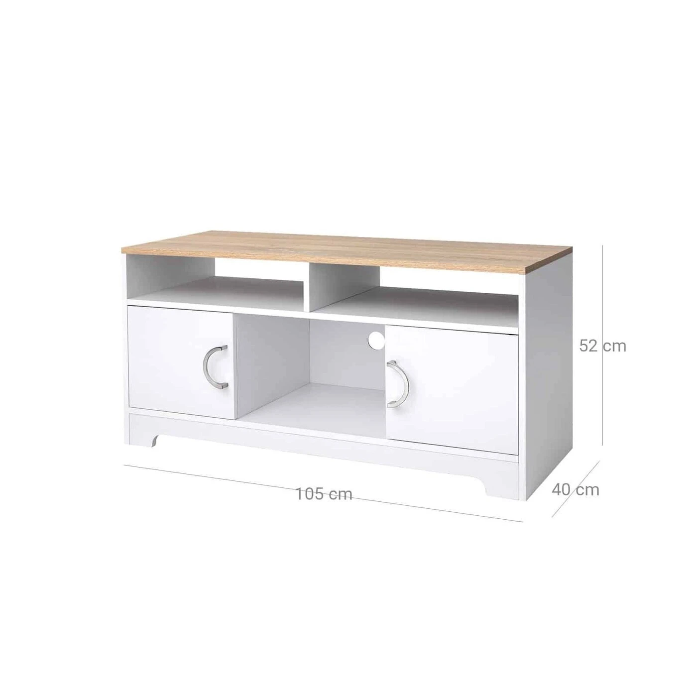 Aprašymas buvo automatiškai išverstas, gali pasitaikyti klaidų.Šiuolaikinio televizoriaus suoliuko privalumai trumpai: - Klasikinis baltos ir medžio tonų spalvų derinys; modernios metalinės rankenos išlenktos į išorę.- Praktiškas išplanavimas: 2 spintos, 3 atviri skyriai, didelis stalo paviršius.- Su melamino danga; lengvai valomas ir atsparus dilimui.- Stabili žemutinė lenta gali būti apkrauta iki 50 kg.- Įrengtas kabelių išvedimas.- Paprastas ir greitas surinkimas dėl sunumeruotų atskirų dalių.Informacija apie gaminį: - Spalva: balta-natūrali - Medžiaga: medžio drožlių plokštė - Dydis: 105 x 42 x 52 cm (P x P x A) - Svoris: 25,7 kg - Maksimali statinė apkrova: 50 kg Pristatymo komplektas: - 1 x TV suoliukas - 1 x konteineris su priedais - 1 x instrukcija (DE, EN, FR, ES, IT) VASAGLE Pastabos: - Atsargiai, aštrūs kampai! Visų pirma, būkite atsargūs, kad vaikai jo neužmuštų. - Surinkite gaminį griežtai pagal instrukcijas. - Vaikai neturėtų laipioti ar žaisti su gaminiu. - Gaminys neturi liestis su vandeniu - Saugokite gaminį nuo smailių ar aštrių daiktų, kad nesugadintumėte.