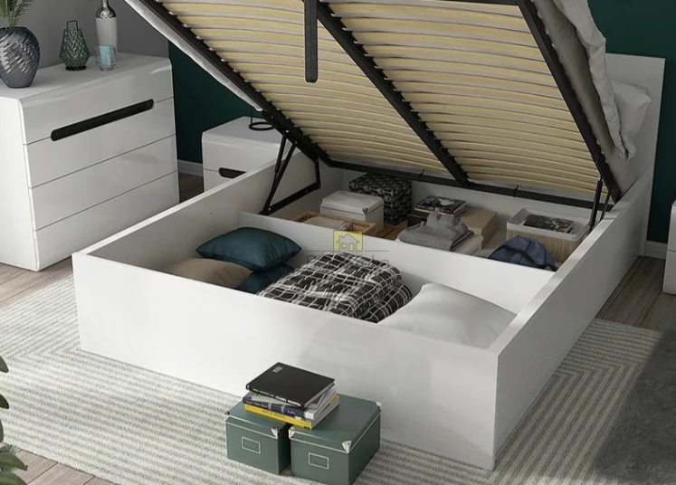Lova su grotelėmis, su patalynės dėže, be čiužinio.