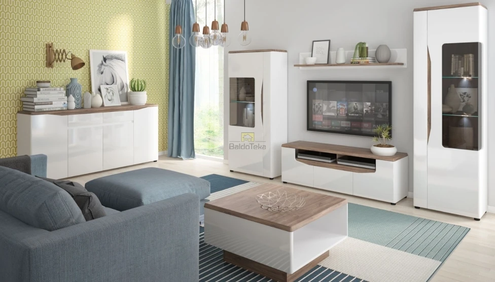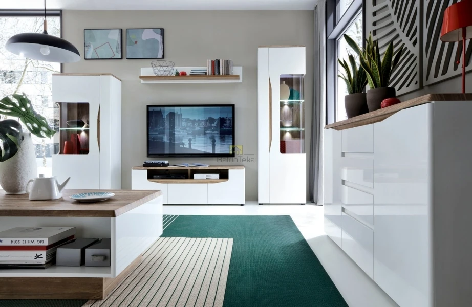 Spalva – balta matinė + balta blizgi + ąžuolas stirling.