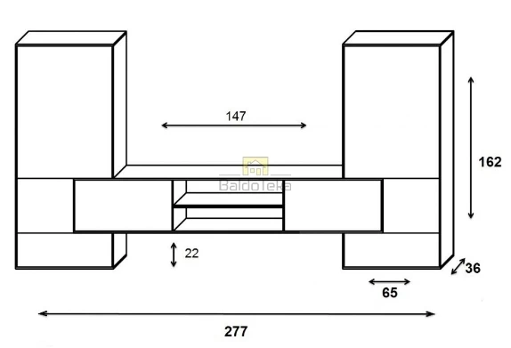 Plotis/Aukštis/Gylis: 278/162/46 cm.