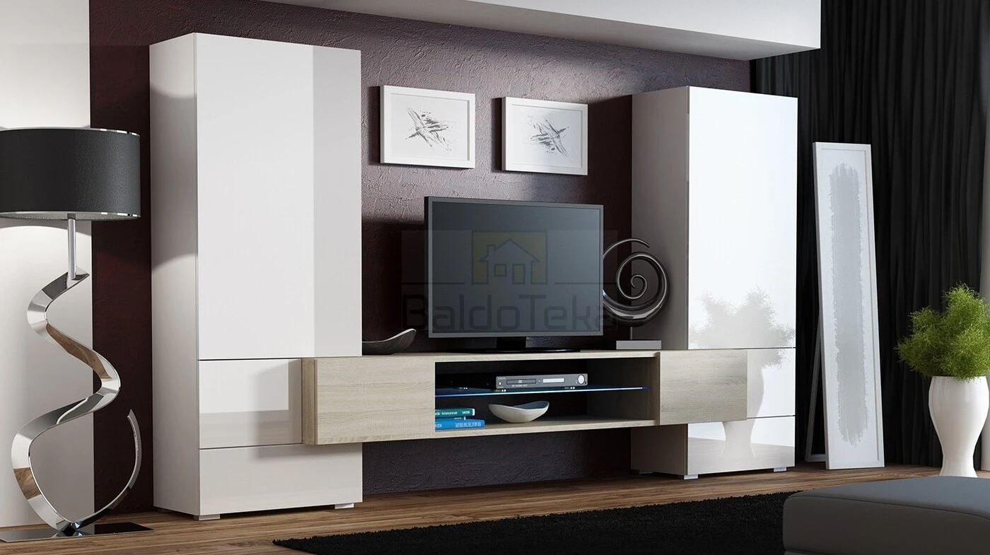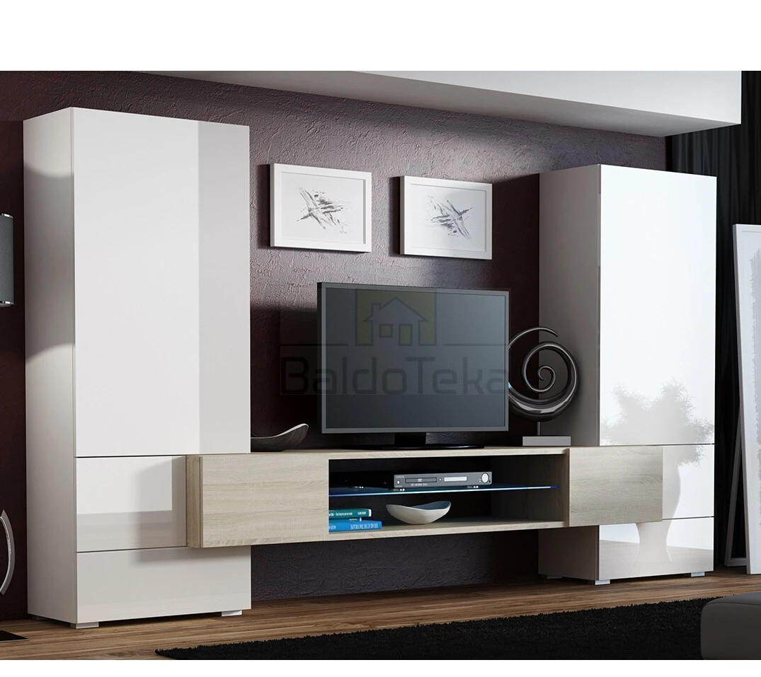 TV staliuko korpusas – ąžuolas sonoma matinis; fasadai – ąžuolas sonoma matinis.