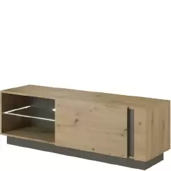 Ant TV spintelės patogiai laikysite televizorių, o lentynose paslėpsite daiktus. Anga baldo gale garantuos TV aparatūros ventiliaciją ir patogų kabelių išvedžiojimą. Taip pat turėsite du kompaktiškus stalčius dokumentams laikyti.