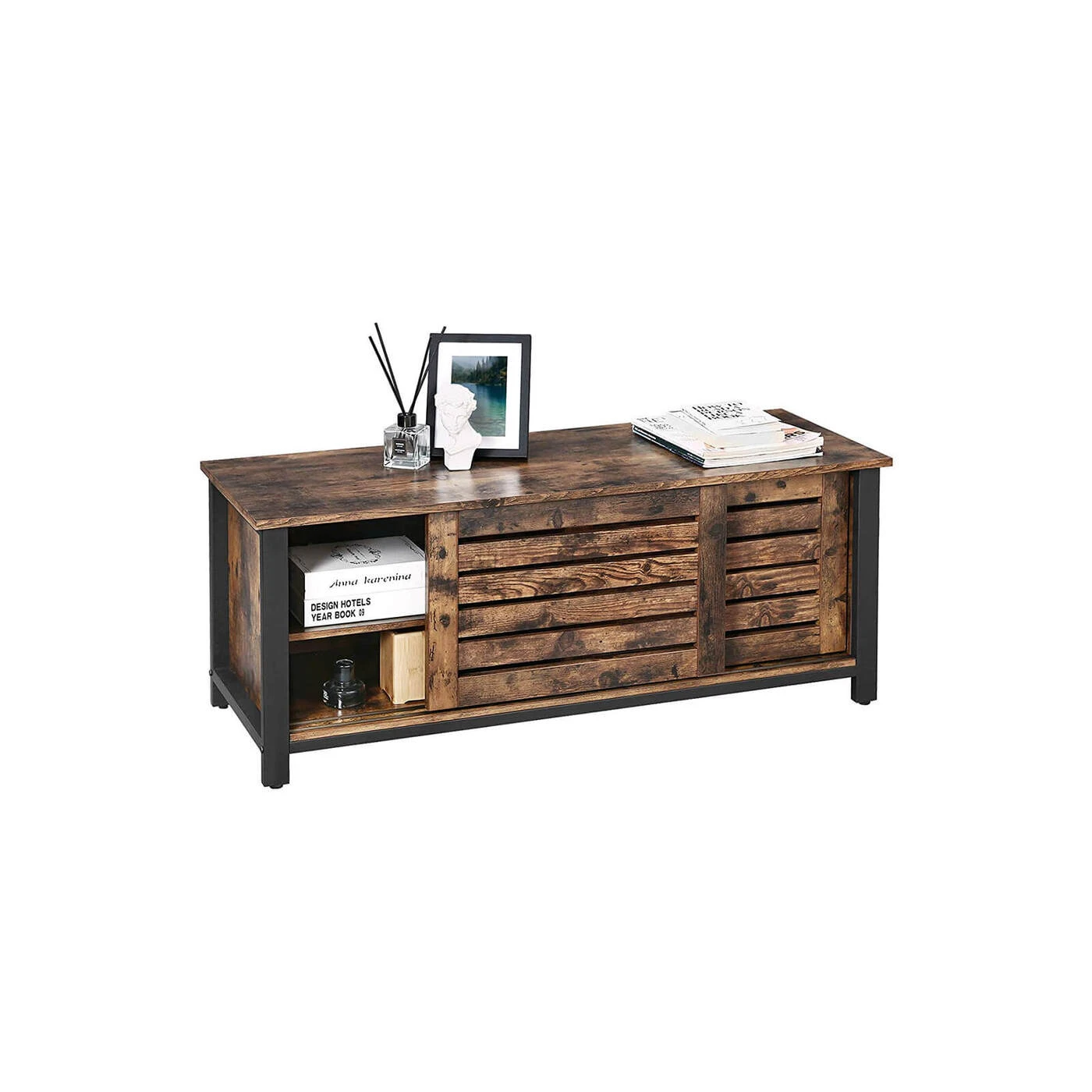 Aprašymas buvo automatiškai išverstas, gali pasitaikyti klaidų.Šiek tiek vintažinio čia, šiek tiek pramoninio dizaino ten Šio televizoriaus korpuso stilių galima apibūdinti kaip geležinio rėmo kompoziciją, kuriai būdinga madinga pramoninė išvaizda, ir tiksliai pagamintų vintažinių plokščių, pagamintų iš dirbtinės medienos. Ypatingo atspalvio suteikia ir neįprastos žaliuzinės durys, kurios žadina smalsumą, kas už jų slypi. Taip sukuriamas vienodas įvaizdis, o baldas yra tvirtas, patrauklus ir tuo pat metu funkcionalus. Paruoštas dideliam naudojimui 110 x 40 x 45 cm (P x P x A) baldas, kurio paviršius gali būti apkrautas 40 kg, tinka šioms naudojimo sritims: - Svetainė: Žema lenta yra kursas tinkamas naudoti kaip stilingas televizorius -spinta iš anksto nulemta. - Miegamasis: naudokite miegamojo baldą kaip televizoriaus stovą arba laikykite patalynę ir vasarinius drabužius, kurių jums nereikia žiemą. - Prieškambaris: universalus baldas taip pat gali būti naudojamas kaip batų spintelė įėjimo zonoje. Taip pat ant lygaus vintažinio paviršiaus padėkite puokštę, pilną rožių ir paveikslų rėmelių.Informacija apie gaminį: - Spalva: vintažinė ruda-juoda - Medžiaga: medžio drožlių plokštės, plienas - Dydis: 110 x 40 x 45 cm (P x P x A) - Svoris: 21,8 kg - Maksimali paviršiaus apkrova: 40 kg - Maks. . lentynų apkrova viduje: 15 kg Pristatymo komplektas: - 1 x TV spintelė - 1 x konteineris su priedais (įskaitant surinkimo įrankius) - 1 x instrukcijos (DE, EN, FR, ES, IT) VASAGLE Pastabos: - Prašome nelaikykite gaminio tiesioginiuose saulės spinduliuose.