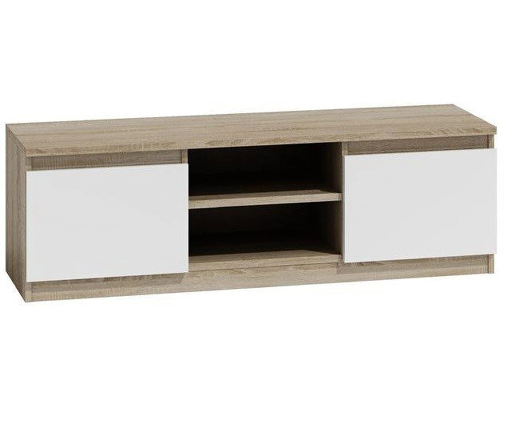 2 uždari ir 1 atviras skyrius su lentyna;Minimalistinio dizaino spintelių durelės, be rankenėlių;Spintelės vyriai - metaliniai;Išmatavimai: plotis – 120 cm, gylis – 40 cm, aukštis – 36 cm;Pagaminta iš 18 mm laminuotos medžio drožlių plokštės (MDP);Kraštai dailinti PVC danga, pasižyminčia dideliu mechaniniu bei cheminiu atsparumu;Spintelės spalva: balta/ąžuolo (sonoma);