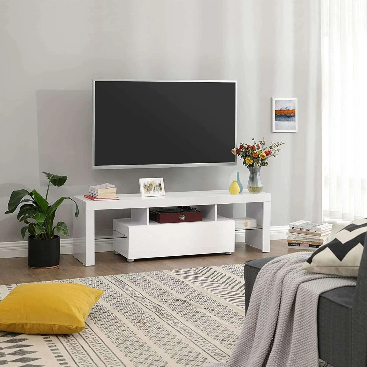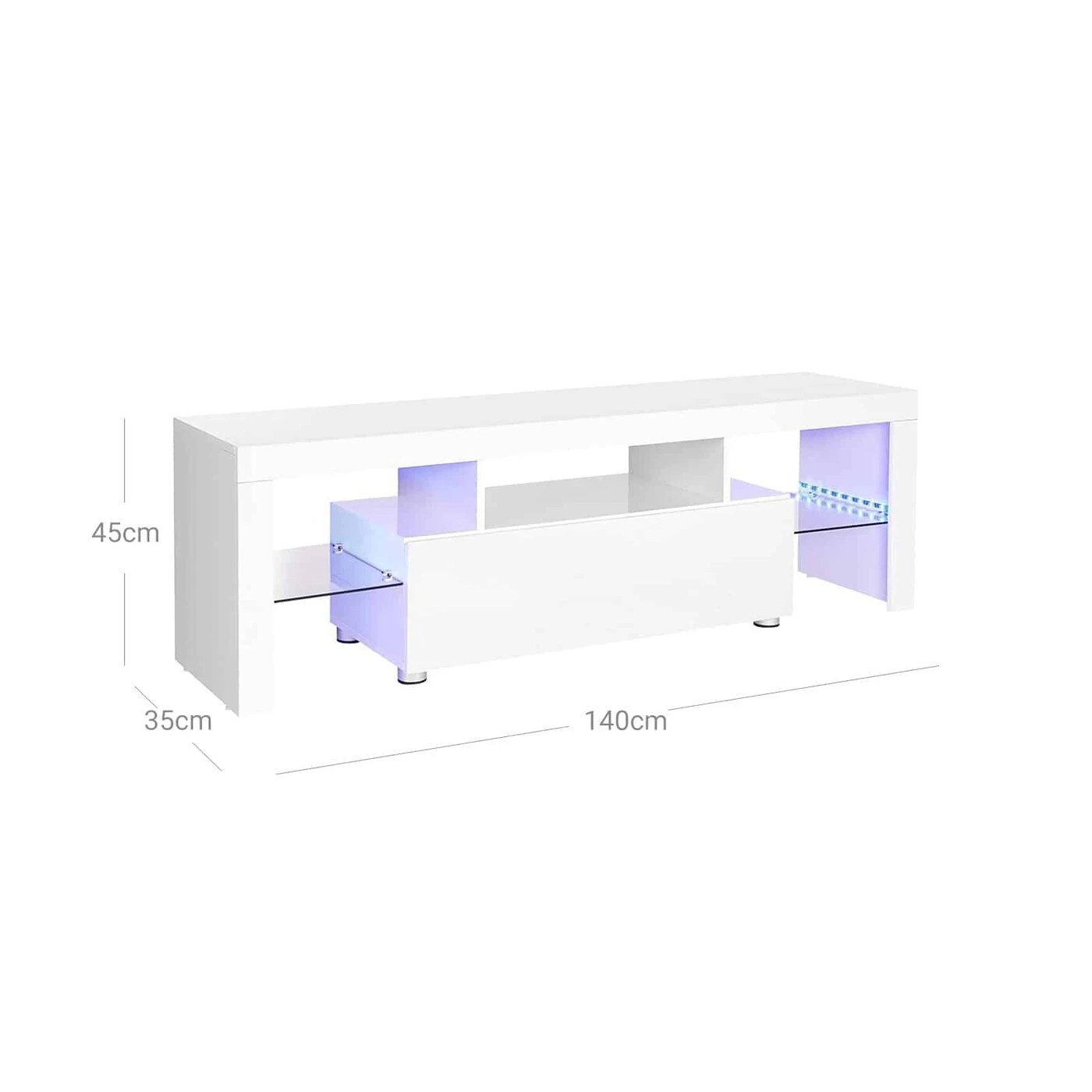 Aprašymas buvo automatiškai išverstas, gali pasitaikyti klaidų.TV kampelis 2.0 Kol visi laukiame 5G ir prieinamų elektromobilių, televizoriai jau atkeliavo naujajame tūkstantmetyje. Žinoma, mūsų televizoriaus baldai turi sekti pavyzdžiu: ši žema lenta gavo modernią baltą blizgančią apdailą. Stikliniai paviršiai ir šviesos juostelės su USB jungtimi taip pat perima šį šiuolaikišką prisilietimą ir perkelia jūsų televizoriaus kampą į ateitį. Televizoriaus korpuso akcentai trumpai: - 140 x 35 cm paviršius televizoriams iki 60 colių - Blizgi balta spalva; ypač tinka šiuolaikinėms svetainėms - 2 šviesos juostos su USB jungtimi, kurias galima prijungti prie televizoriaus ar kitų maitinimo šaltinių. Juostelės šviečia skirtingomis spalvomis, prireikus gali būti trumpinamos. - Atviri skyriai, didelis sulankstomas skyrius su švelniai užsidarančiomis durelėmis ir 2 stiklinėmis lentynomis - Reguliuojamo aukščio kojelės vidurinėje srityje - Veltinio pagalvėlės šonuose; apsaugoti grindis nuo įbrėžimųInformacija apie gaminį: - Spalva: Blizgiai balta - Medžiaga: medžio drožlių plokštės, grūdintas stiklas - Dydis: 140 x 35 x 45 cm (P x P x A) - Svoris: 21,4 kg - Maksimali statinė apkrova: 30 kg Pakuotės turinys: - 1 x TV -Spinta - 1 x konteineris su priedais - 1 x instrukcija (DE, EN, FR, ES, IT) VASAGLE Pastabos: - Vaikams draudžiama lipti ant gaminio. Taip pat pasirūpinkite, kad jūsų vaikai neatsitrenktų į aštrius šios spintelės kampus. Pavojus susižeisti! - Saugumo sumetimais laikykite vaikus toliau nuo šviesos juostų. - Prieš gabendami į kitą vietą, įsitikinkite, kad šio gaminio stiklo plokštės nėra atsilaisvinusios. Be to, transportuodami visada pakelkite. Nevilkite jo per grindis. - Šis gaminys skirtas naudoti tik patalpose. Saugokite nuo drėgmės.