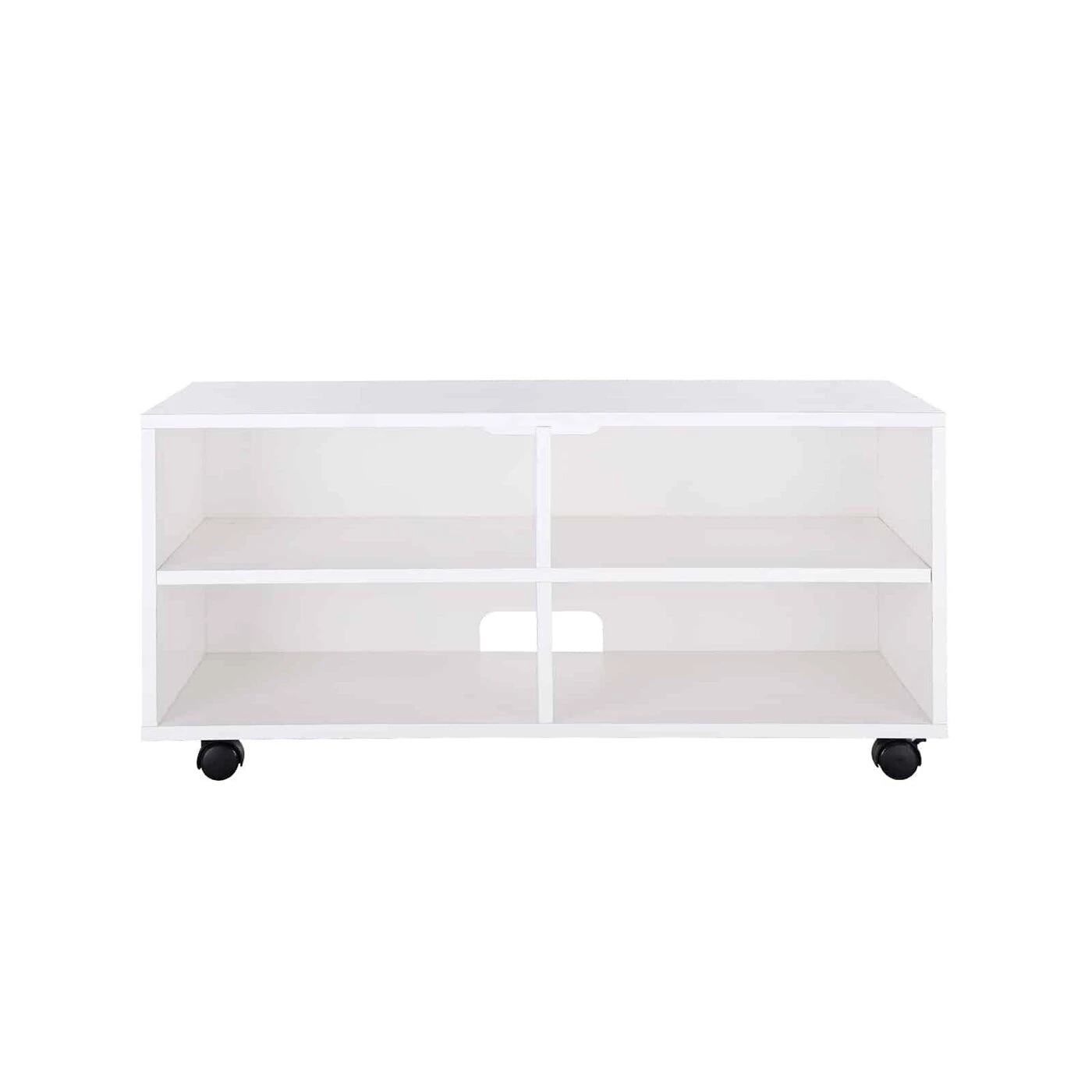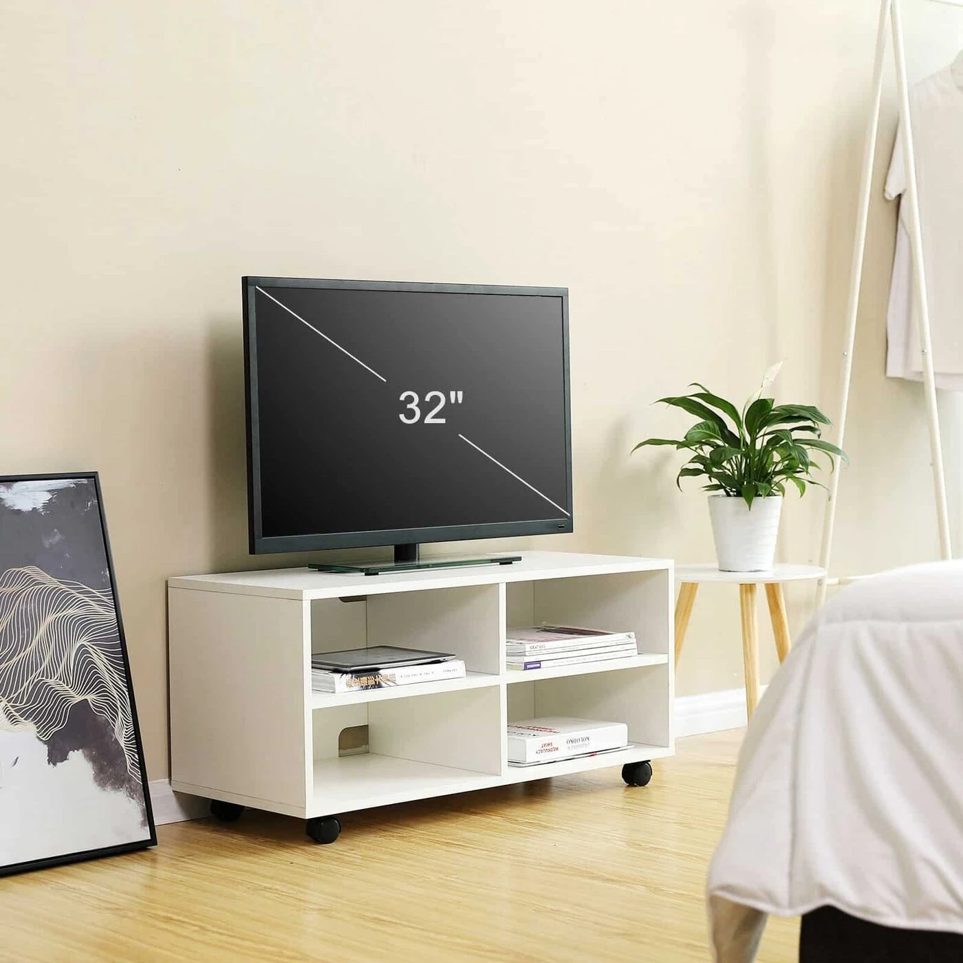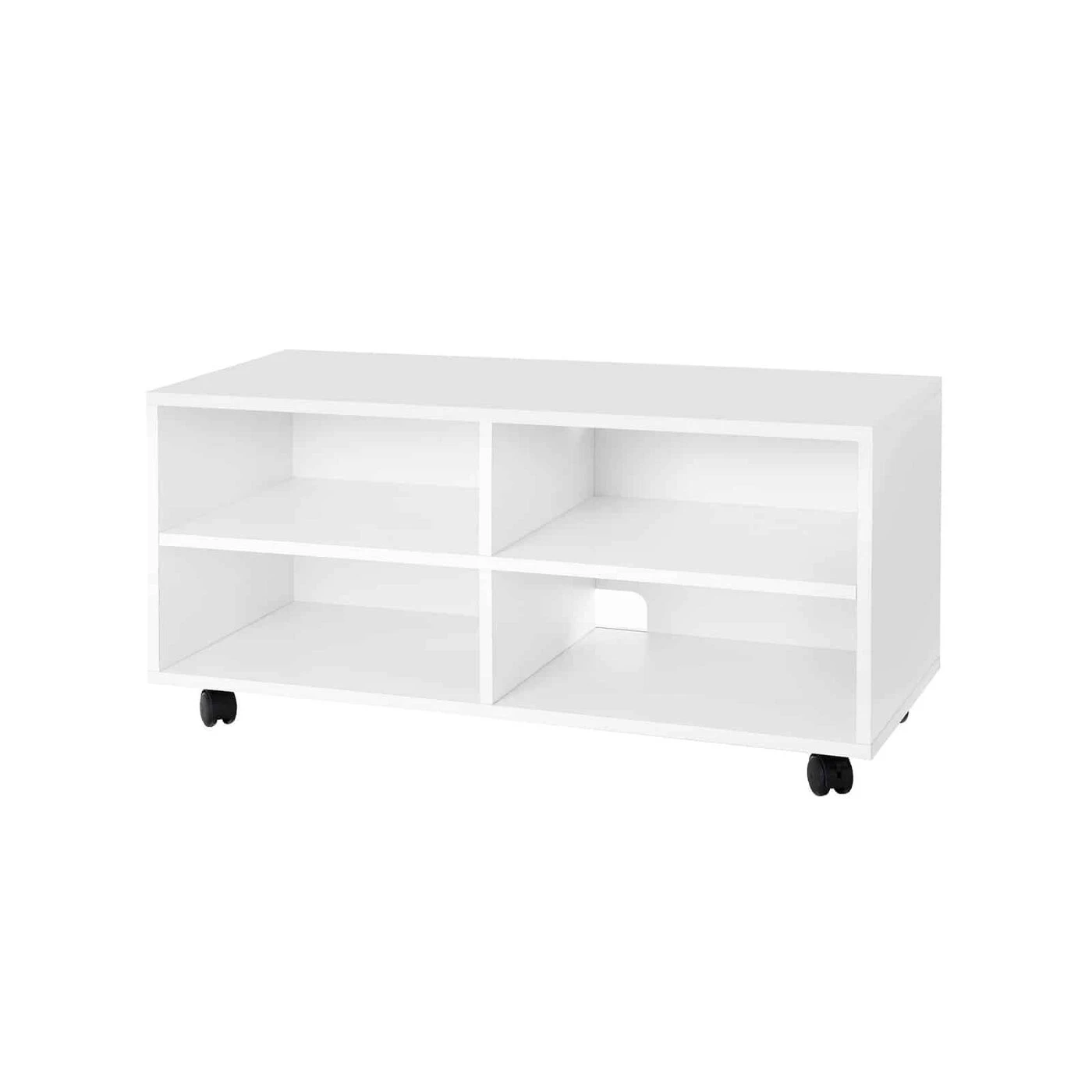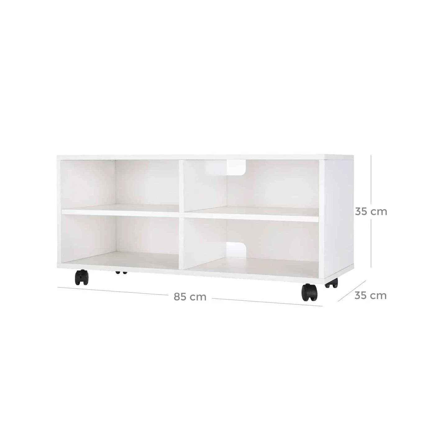 Aprašymas buvo automatiškai išverstas, gali pasitaikyti klaidų.Elegantiška televizoriaus spintelė Balta spintelė puikiai tinka daugeliui įrenginių mėgstamoms laidoms žiūrėti. Paprasta elegancija puikiai dera su skirtingais apstatymo stiliais ir subtiliai papuošia kiekvieną gyvenimo stilių. Su 4 skyreliais daugiau įrenginių Šiame spintelėje yra vietos kiekviename įrenginyje, pavyzdžiui, imtuve, kietajame diske, DVD grotuve ir visa kita, ko reikia ramiam vakarui prie televizoriaus. Kiekvienas galinis įrenginys turi savo skyrių su skyle galinėje sienelėje, kad nesimatytų maitinimo laido ir jungiamojo laido. Su 4 ratukais daugiau laisvės Su ratukais galite lengvai perkelti televizoriaus plokštę, kad galėtumėte išsiurbti apačioje arba, jei reikia, tiesiog nustumti žemąją lentą iš svetainės į miegamąjį. Tai suteikia daugiau laisvės ir leidžia lanksčiau naudoti naują televizoriaus korpusą.Produkto informacija: - Spalva: balta - Medžiaga: MDF plokštė + medžio drožlių plokštė + melamino fanera - Matmenys: 85 x 35 x 35 cm (P x A x G) - Svoris: 12,5 kg - Maksimali viršutinės spintelės plokštės apkrova: 30 kg - Maksimali kiekvieno skyriaus apkrova: 15 kg Pristatymo komplektas: - 1 x TV spintelė - 1 x priedų krepšys - 1 x rankinis (DE, EN, FR, ES, IT)
