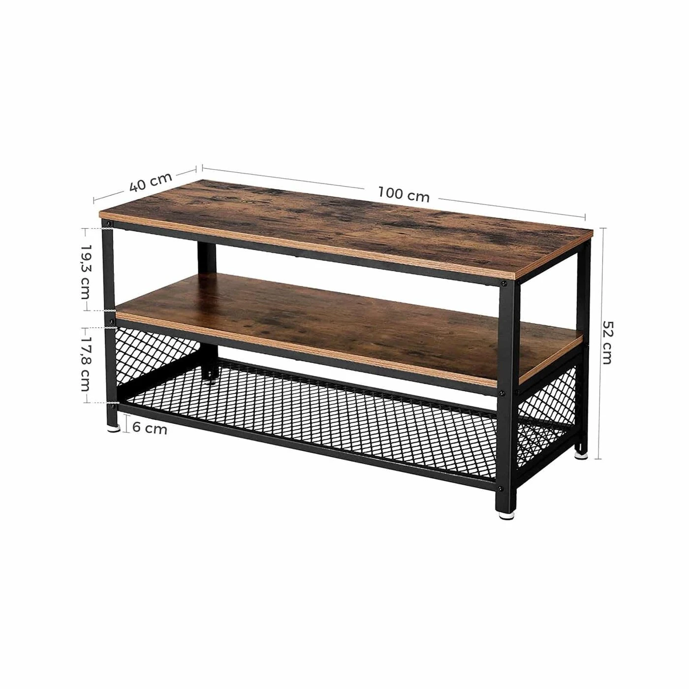 Aprašymas buvo automatiškai išverstas, gali pasitaikyti klaidų.Su madinga vintažinio stiliaus televizoriaus spintele iš mūsų naujojo prekės ženklo „VASAGLE“ galite sukurti būtent tai, ką sumanė dizaineriai: Viduržemio jūros atmosferą savo keturių sienų viduryje. Taip pat atkreipkite dėmesį į kitus mūsų madingos vintage linijos baldus ir derinkite televizoriaus stalą su mūsų laisvai pastatoma tokio paties stiliaus lentyna. Mėgstamiausias serialų mėgėjams Naudokite šią funkcionalią televizoriaus konsolę plokščiajam ekranui ir žiūrėkite mėgstamus serialus nuolat. Kokios televizijos laidos šiuo metu negalite atsigaivinti? Praneškite mums komentaruose ir įkelkite savo naujojo svetainės stalo nuotrauką. Jūsų DVD kolekcijai ir žaidimų konsolei Apatinėje televizoriaus korpuso dalyje yra 2 stabilios lentynos, ant kurių galite padėti DVD, žaidimų konsolę arba nuotolinio valdymo pultą. 3 išimamuose ir sulankstomuose tekstilės stalčiuose taip pat galite tvarkingai laikyti televizoriaus laidus arba naudojimo instrukcijas.Išsami informacija apie gaminį: - Spalva: vintažinė, pilka - Medžiaga: medžio drožlių plokštė, geležies rėmas, neaustinis audinys - Bendras dydis: 100 x 40 x 52 cm (P x P x A) - Stalviršio dydis: 99 x 39 cm (P x P) ) - Svoris: 16 ,4 kg - Keliamoji galia: 30 kg Pristatymo komplektas: - 1 x TV stovas - 1 x Priedų krepšys - 1 x Instrukcija (DE, EN, FR, ES, IT) VASAGLE Pastabos: - Prašome padėti gaminį sausoje vietoje. - Nedėkite ant baldų sunkių daiktų.