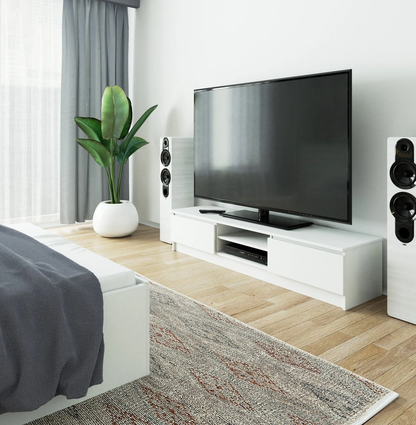 Aprašymas buvo automatiškai išverstas, gali pasitaikyti klaidų. Ar planuojate remontuoti arba įrengti savo butą? Pagalvokite apie savo svetainę ir televizorių. Jei nenorite jo dėti ant grindų, greičiausiai rinksitės RTV spintelę. Tuomet siūlome įsigyti pristatytą modelį, kuris ne tik atliks savo pagrindinę, praktinę užduotį, bet ir bus nepaprastas interjero papildymas. Viskas dėl gražios baltos spalvos, kurioje buvo sukurta RTV komoda. Unikali spalva dar ne viskas, kopija itin funkcionali. Įrengtos dvi didelės talpos spintelės, kuriose galėsite įdėti kompaktinius diskus, knygas ar dokumentus. Komodos viduryje vietoj trečios spintelės, kuri gali pasirodyti nereikalinga, yra lentynos pultui, dekoderiui ar muzikos grotuvui. Mūsų parduotuvėje esantis televizoriaus stovas yra labai tvirtas. Tai liudija faktas, kad jis pagamintas iš 16 milimetrų storio laminuotos plokštės. Šis sprendimas taip pat atsparus trinčiai. Papildomas privalumas yra tai, kad spintoje yra ABS apvadai matomuose kraštuose, o tai reiškia didesnį atsparumą pažeidimams. Rekomenduojame patikrinti visą CLP baldų sistemą, prie kurios spintelė puikiai dera. Modelis yra 160 centimetrų ilgio, 33 centimetrų aukščio ir 40 milimetrų gylio. - TV spintelė 160 centimetrų ilgio - modelis pagamintas iš trinčiai atsparios laminuotos plokštės - ABS apvadai didesniam patvarumui - lentynos tokiems įrenginiams kaip priedėlis ar konsolė - dvi erdvios spintelės - yra komplekte esantis savarankiško surinkimo vadovas - garantija iki 24 mėnesių