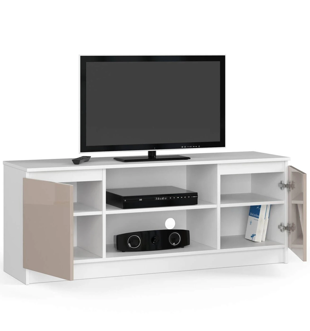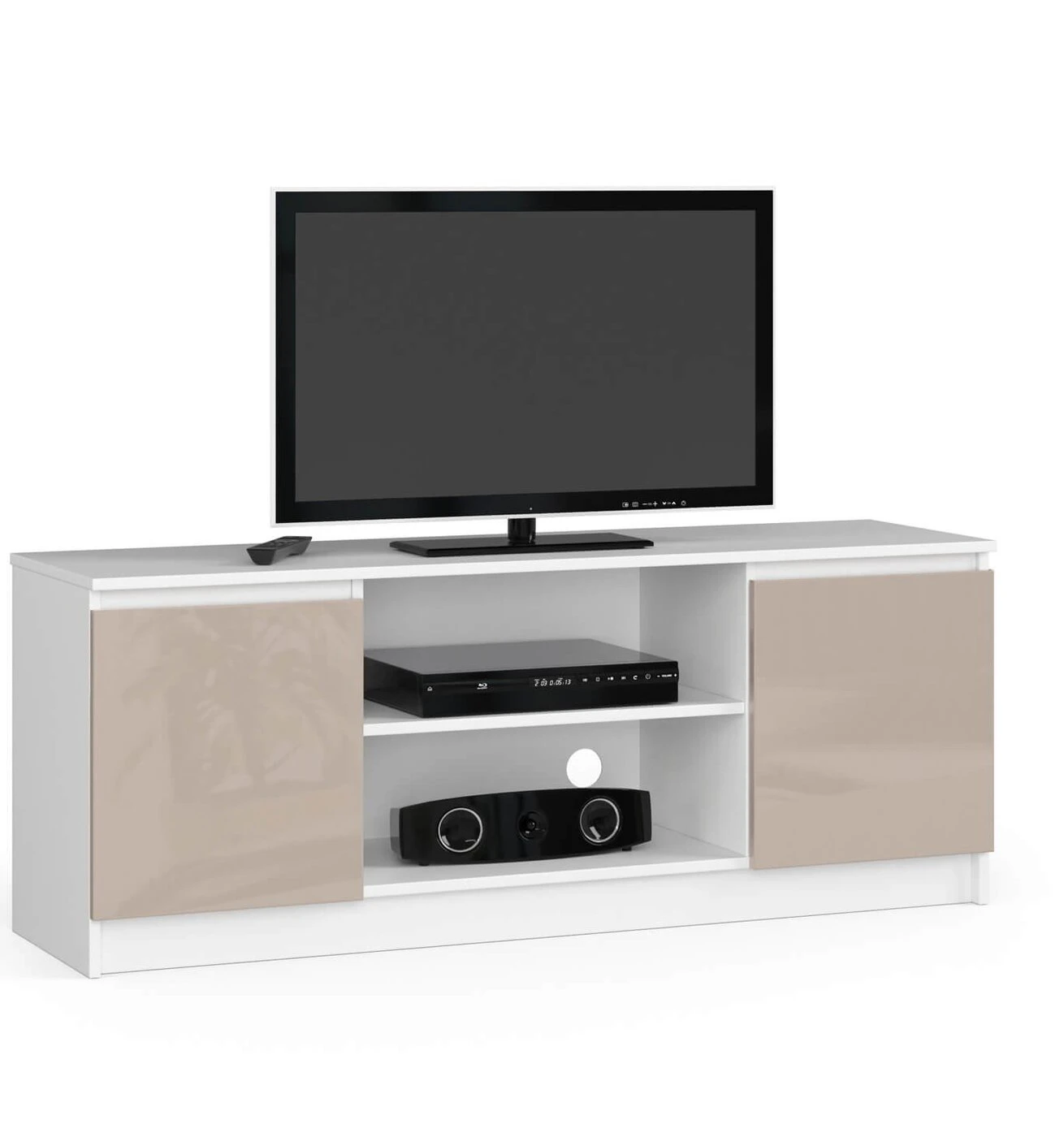 Aprašymas buvo automatiškai išverstas, gali pasitaikyti klaidų. 140 cm televizoriaus korpusas pagamintas iš laminuotos Kronospan plokštės, atsparios trinčiai. Jo korpusas yra, baltos spalvos, o spintelių priekinės dalys yra kapučino spalvos ir yra labai blizgios. Spintelė suprojektuota taip, kad joje vizualiai aiškiai išsiskirtų centrinė dalis, susidedanti iš dviejų lentynų, puikiai tinkančių garso ir vaizdo aparatūrai (grotuvui, priedėliui ir kt.) pastatyti. Abiejose centrinės dalies pusėse yra vienvėrės durys, už kurių yra spintelės po 2 lentynas. Svarbiausi pristatomos TV spintelės privalumai: patogūs baldų matmenys - spintelės plotis 140 cm, aukštis 55 cm ir gylis 40 cm; diferencijuota sandėliavimo vieta - lentynose galima laikyti įrangą kurie turėtų būti prieinami (pvz., pilotui) visą laiką, o spintelėse tie daiktai, kurie turi būti apsaugoti nuo dulkių ar pažeidimų; dviejų spalvų dizainas, užtikrinantis įdomų efektą ir didesnes išdėstymo galimybes; labiausiai veikiamų mechaninių pažeidimų kraštų apsauga naudojant ABS plastiką; spinta pagaminta pagal gamintojo baldų sistemą (CLP) – leidžia bet kokį derinimą su kitais baldais, gaminamais ta pati sistema; 24 mėnesių gamintojo garantija. 140 cm televizoriaus spintelė baltos / kapučino spalvos yra modernus ir nesenstantis baldas dėl savo paprastos formos ir malonių, universalių spalvų. Puikiai tinka minimalistiškai įrengtai svetainei ir jaunimo kambariui, taip pat švelniam miegamajam, dekoruotam ryškiomis spalvomis.
