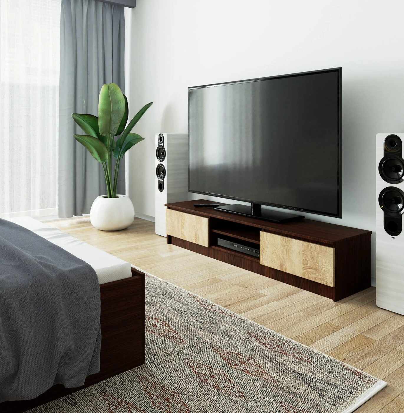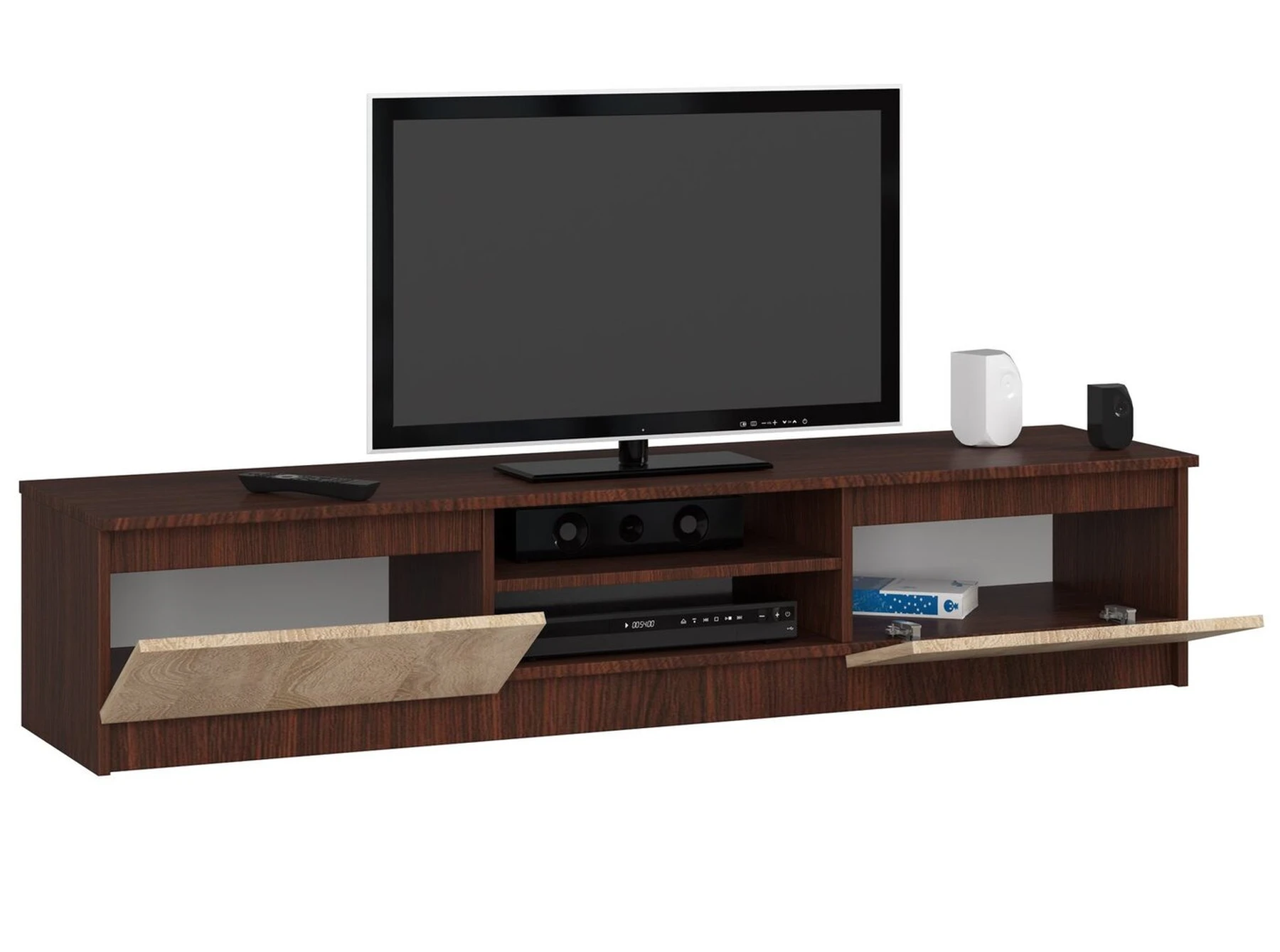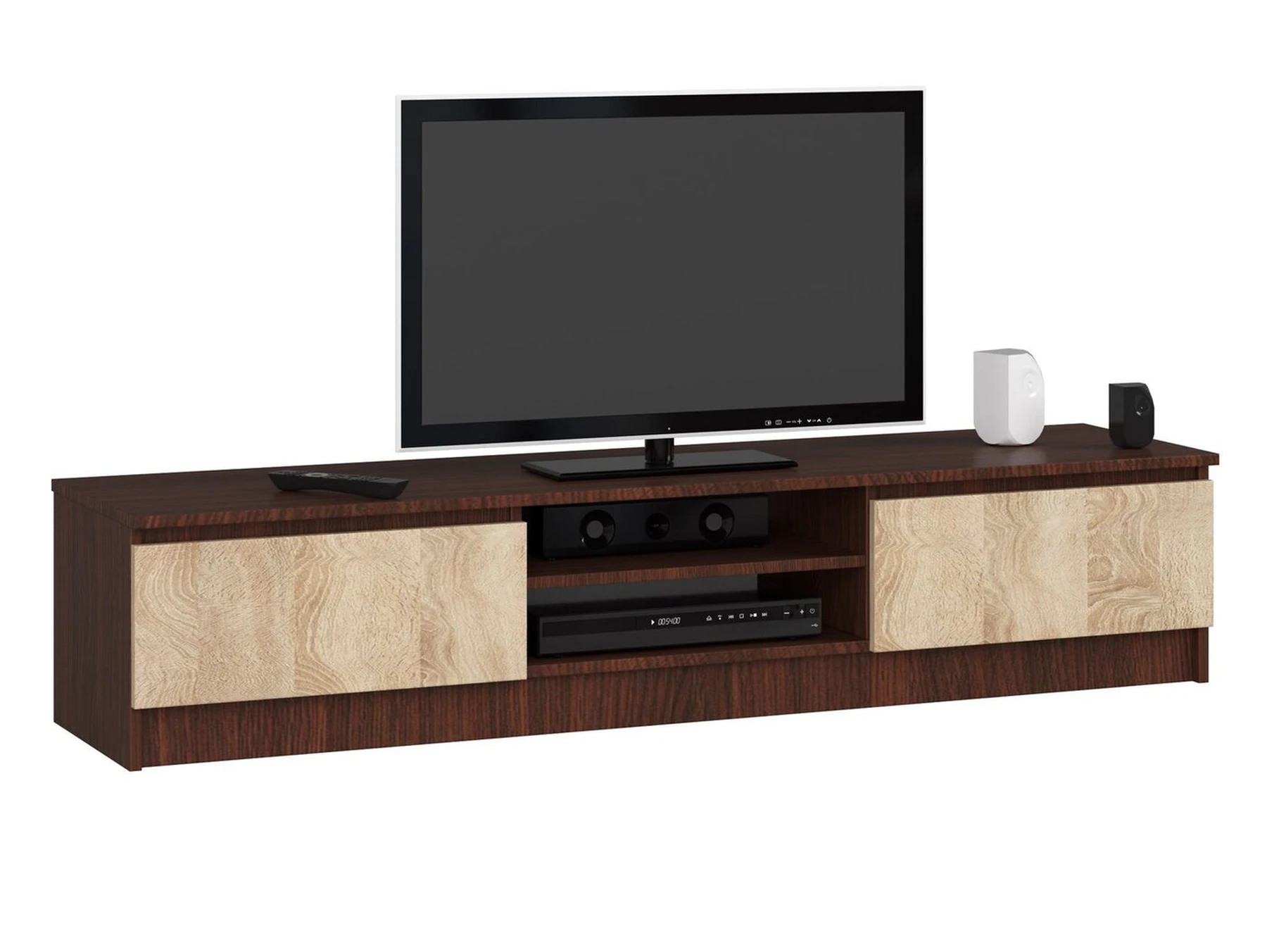 Aprašymas buvo automatiškai išverstas, gali pasitaikyti klaidų. TELEVIZORIAUS SPINTELĖ, tamsiai rudos/ąžuolo spalvos 160cm – tai baldas, kuriame dera funkcionalumas, ilgaamžiškumas ir estetiška išvaizda. Jis buvo pagamintas iš aukštos kokybės 16 mm storio laminuotos plokštės, kuri yra atspari pažeidimams. Jos matmenys yra 160 cm ilgio, 33 cm aukščio ir 40 cm gylio. Komodoje yra dvi spintelės, kuriose galėsite paslėpti įvairius daiktus nuo kitų akiračio. Savo ruožtu dvi lentynos yra puiki vieta priedėliams ir konsolėms. Todėl visa tai labai patogu naudoti. Baldas yra paprastos formos ir puikiai tiks prie įvairaus tipo patalpų išdėstymo. Tuo pačiu metu jis nepaprastai išsiskiria savo spalvomis. Spintelė yra, tamsiai rudos spalvos spalvos, bet priekinės dalys yra sonomos ąžuolo. Jis puikiai tiks svetainėje, nors gali būti patalpintas ir jaunimo kambaryje, miegamajame ar laukiamajame. Didžiausias televizoriaus stalo privalumas – galimybė sukonfigūruoti sieninį bloką, t.y. įmontuoti vieną, dvi ar daugiau pakabinamų spintelių ir sukurti puikų sienos dizainą. Baldus taip pat galima įsigyti už patrauklią kainą. Norint įsigyti patvarų ir solidų baldą, kuris kartu atrodo nepriekaištingai, mokėti nereikia daug. Mūsų RTV spinta yra daugelio metų investicija.