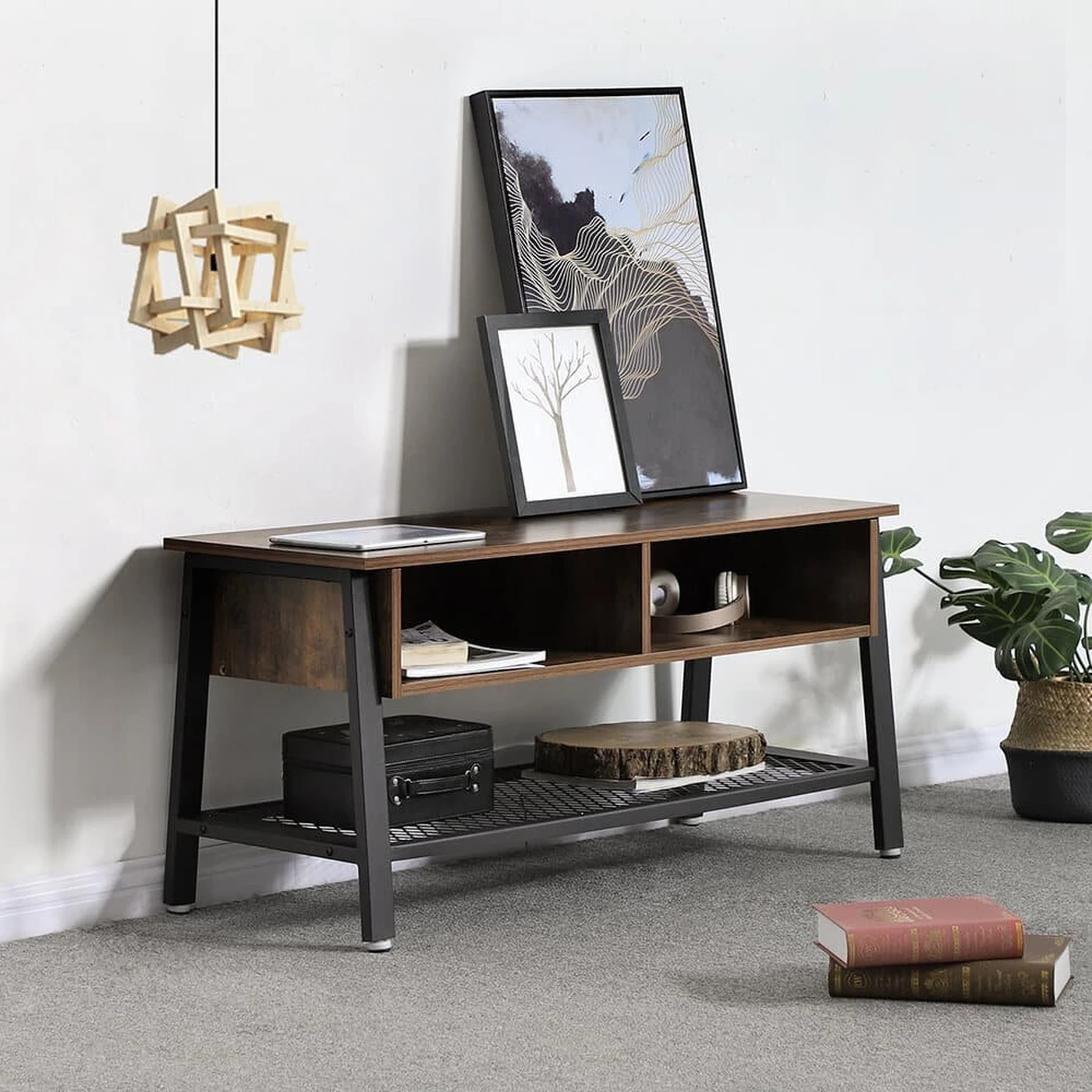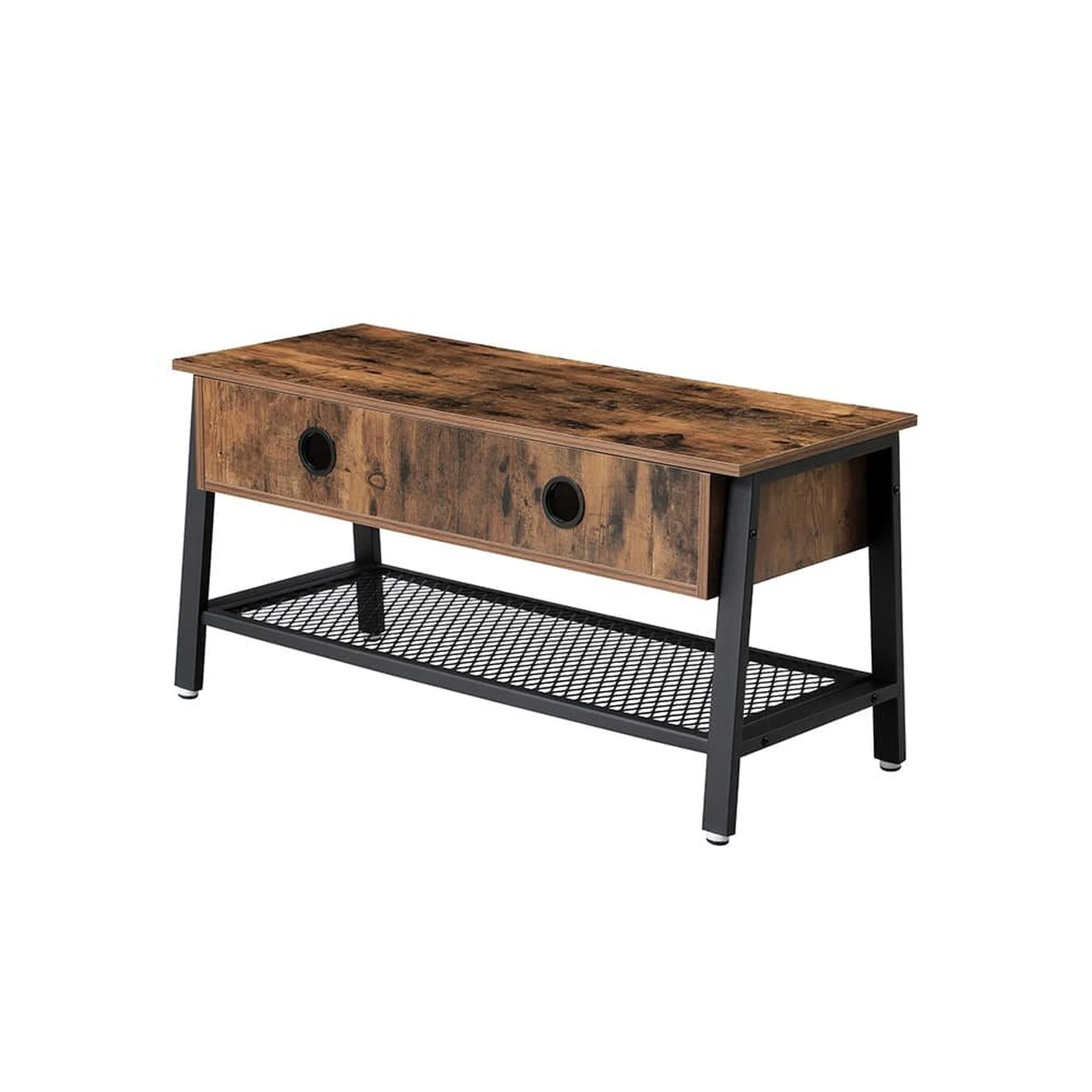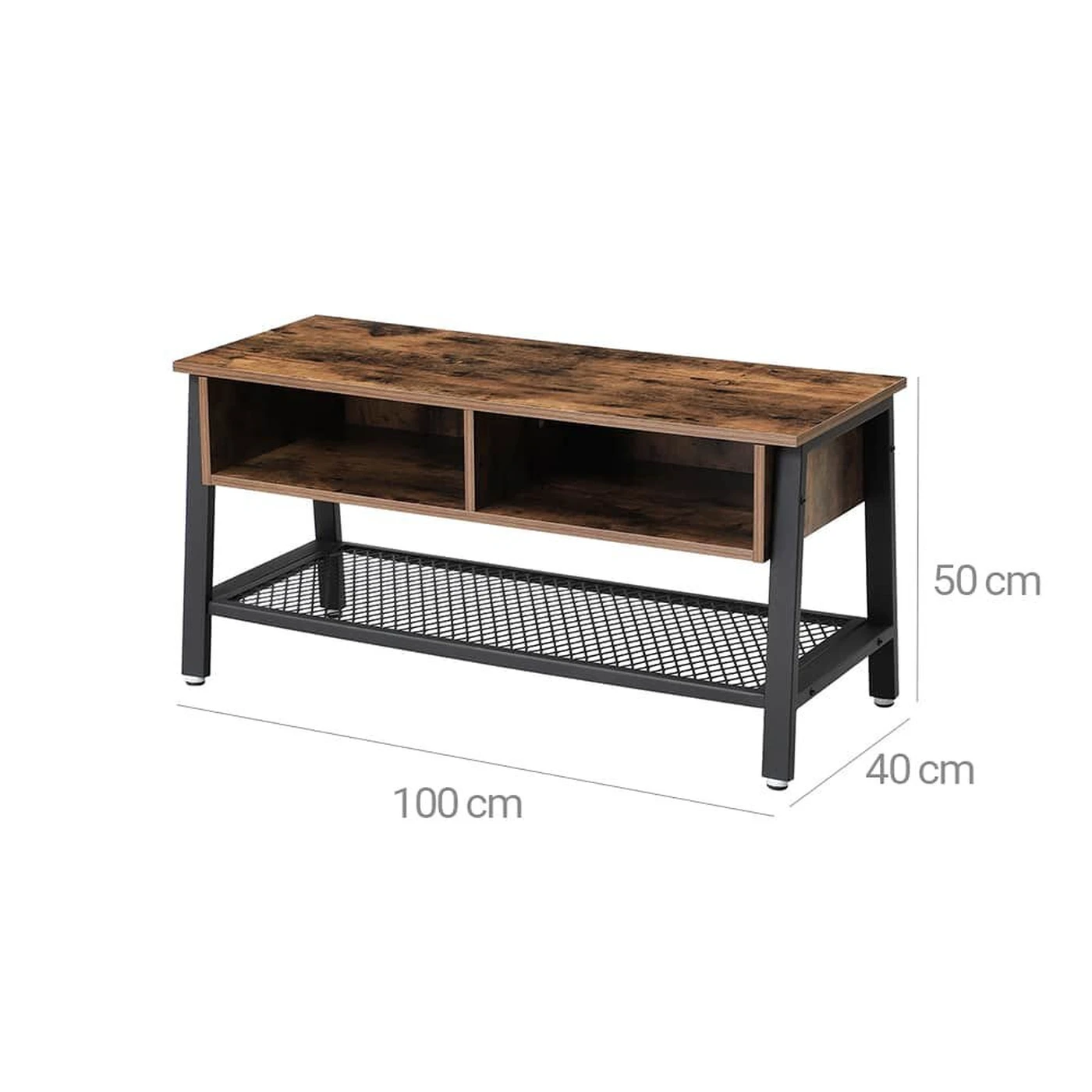 Aprašymas buvo automatiškai išverstas, gali pasitaikyti klaidų.Informacija apie gaminį: - Spalva: vintažinė ruda-juoda - Medžiaga: medžio drožlių plokštė, plienas - Matmenys: 100 x 50 x 40 cm (P x A x G) - Svoris: 17,8 kg - Maksimali stalviršio apkrova: 30 kg - Maksimali grotelių lentynos apkrova: 10 kgPristatymo komplektacija: - 1 x televizoriaus žema lenta - 1 x priedų krepšys - 1 x rankinis (DE, EN, FR, ES, IT) VASAGLE Pastabos: - Gaminys skirtas naudoti tik patalpose. Padėkite jį sausoje aplinkoje. Maksimalus stalviršio svoris yra 30 kg, o grotelių lentyna - 10 kg. Nedėkite ant jo sunkesnių daiktų.