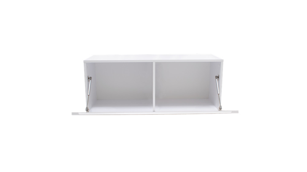 Modernus pakabinamas TV staliukas;TV staliukas su 1 durelėmis, už jų - 2 skyriai;TV staliuko korpusas pagamintas iš medžio drožlių plokštės (MDP), storis – 16 mm;TV staliuko fasadas pagamintas iš blizgios medžio drožlių plokštės (MDP), storis – 17 mm;Kraštų apdaila: ABS;TV staliuko išmatavimai: ilgis - 100 cm, aukštis - 40 cm, gylis - 38 cm;Spalva: balta (fasadas - blizgus);Maksimali apkrova: 15 kg;Lėto durelių užsidarymo funkcija;